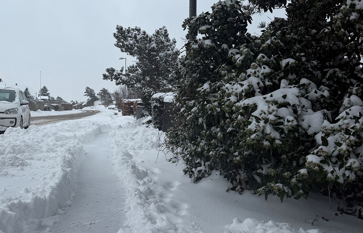 Sneen driller flere steder. For eksempel ved rundkørslen i Bjergsted.