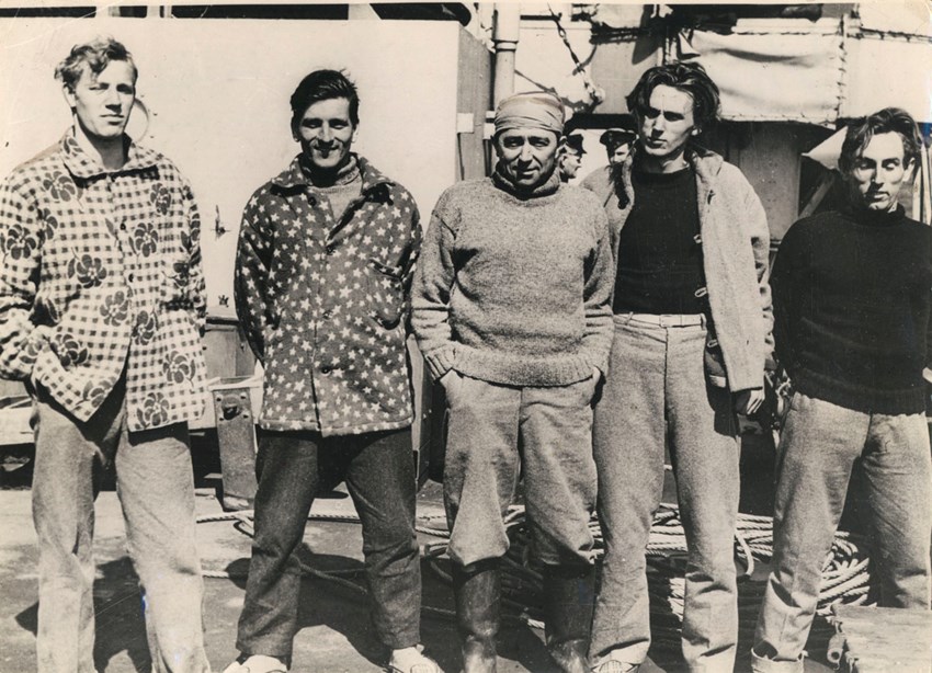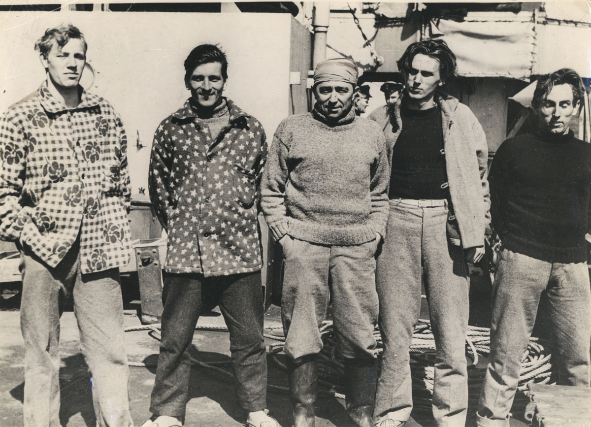 De fem overlevende, alle danske, fra det forliste skib Panama, i midten 1. styrmand Oluf Henry Christofferen. De øvrige er matroserne S.B. Sørensen, K.E. Pedersen og A. Olsen og den 27-årige 3. styrmand G.A.