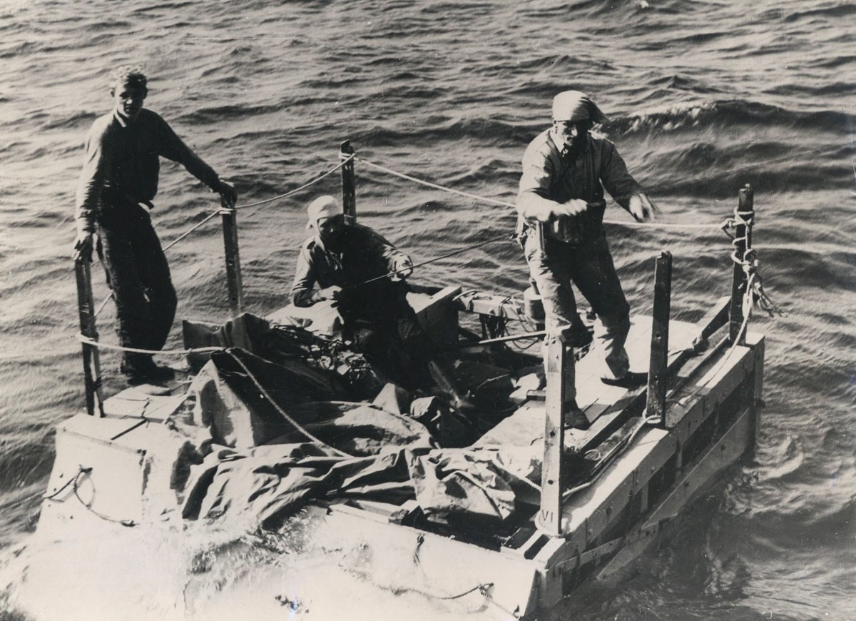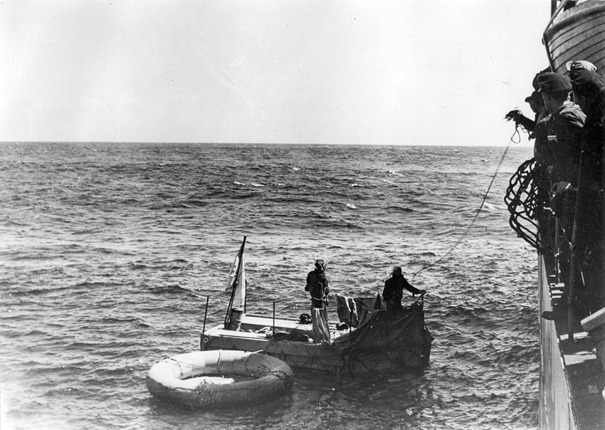 Overlevende fra Panama tages om bord i den canadiske fregat Capilano den 29. april 1945. Foto: M/S Museet for Søfart. Fotograf Thomas Wood.