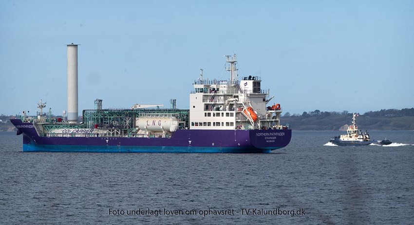 Det nybyggede specialskib til transport af CO2, Northern Pathfinder, anløb Kalundborg Fjord midt marts.
