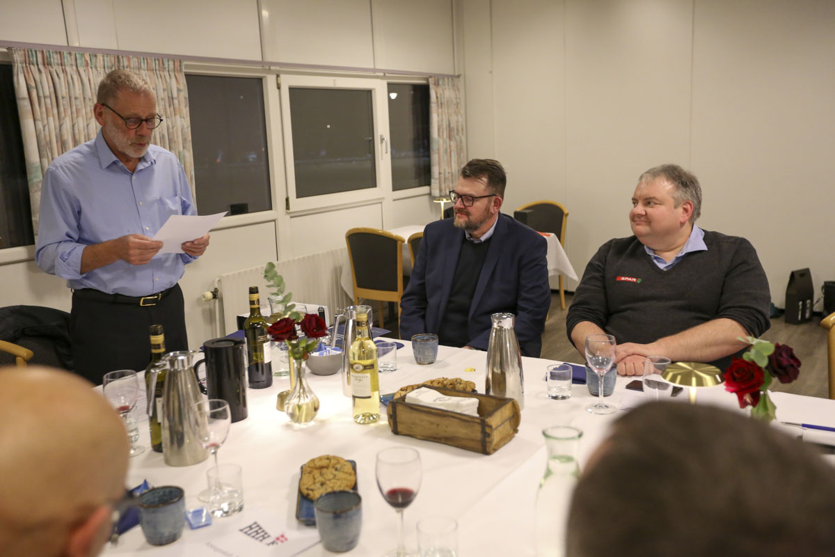 Formand for Høng Erhvervsforening John Anderberg fandt, efter den formelle del af foreningens generalforsamling, et stykke papir frem, hvorpå han havde skrevet nogle ord ned, som han ville sige i forbindelse med overrækkelsen af årets erhvervspris.