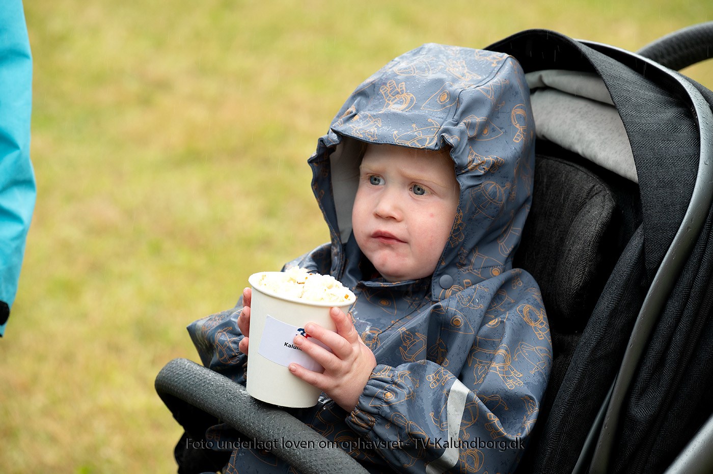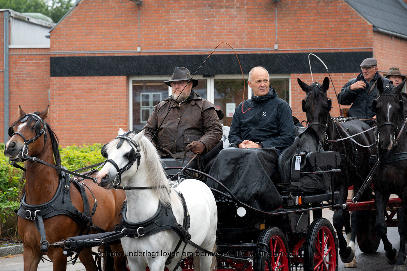 Men alligevel var mange familier mødt op bevæbnet med regntøj, paraply og gummistøvler. En af traditionerne ved sommerens marked er et optog gennem Gørlev by, sådan var det også i år selv om der ikke var mødt mange op for at se optoget med de flotte heste. Med i optoget var også borgmester Martin Damm iført regnfrakke.