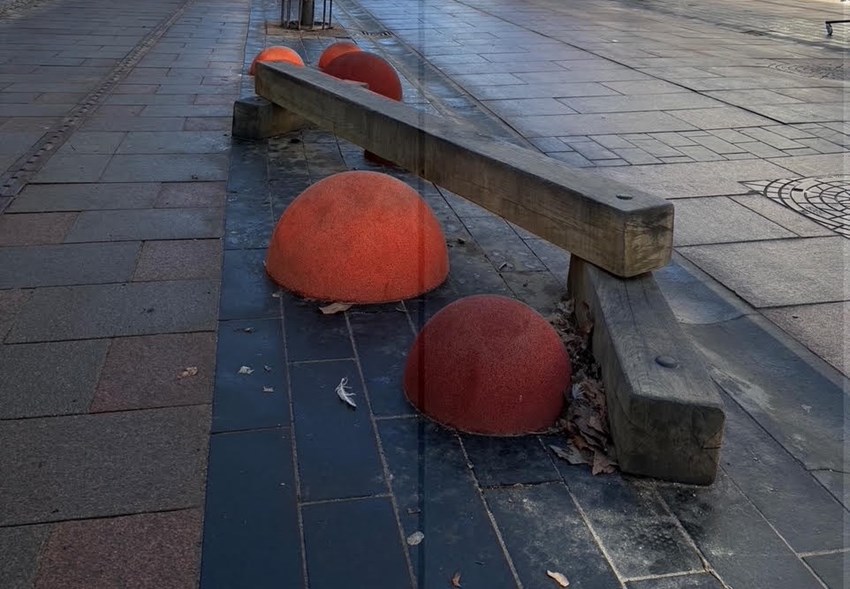 Balancebomme og hoppetoppe langs gågaden giver gode muligheder for bevægelse. Foto: Karen Vibeke Husted Rasmussen.