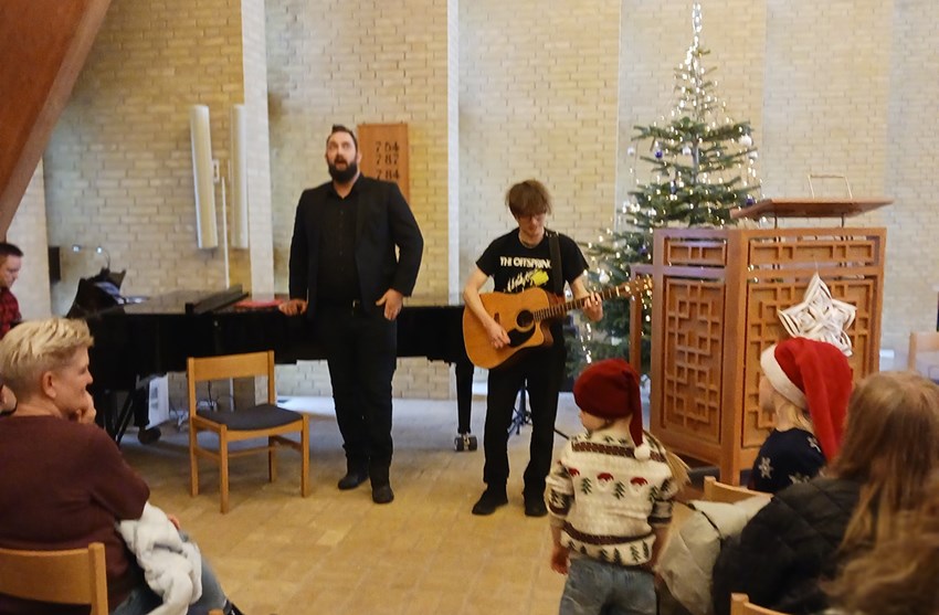 Blandt de musikalske indslag sørgede Thomas Thopper (flygel), Sebastian (sang) og Alexander (guitar) for tonerne til Silent Night (Glade jul).