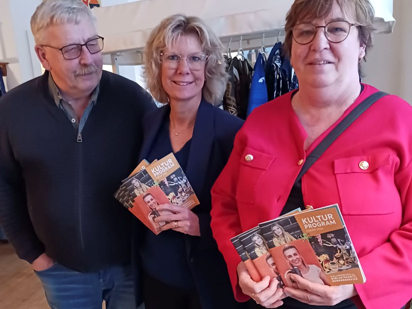 Turistforenings formand Hans-Henrik Nielsen sammen med Stine Veisegaard og Lone Siefert, der rundhåndet delte ud af Kalundborg Bibliotekers splinternyt kulturprogram. Foto: Sonja Husted