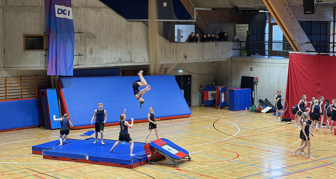 Kalundborg Hallerne har siden fredag aften været fyldt med høj musik, spring og rytme samt en masse glade mennesker, herunder gymnaster fra forskellige hold i hele landet.