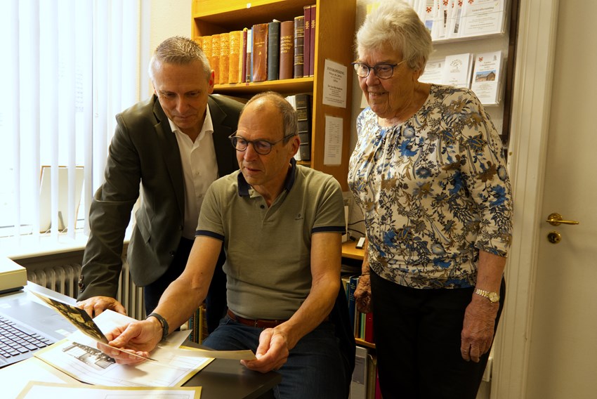 Klaus Koksby Hansen fra Fonden SJF Bank, Finn Knudsen og Anne Christensen fra Gørlev Lokalhistoriske Forening. Privatfoto