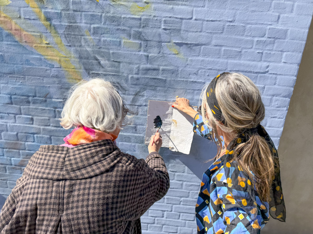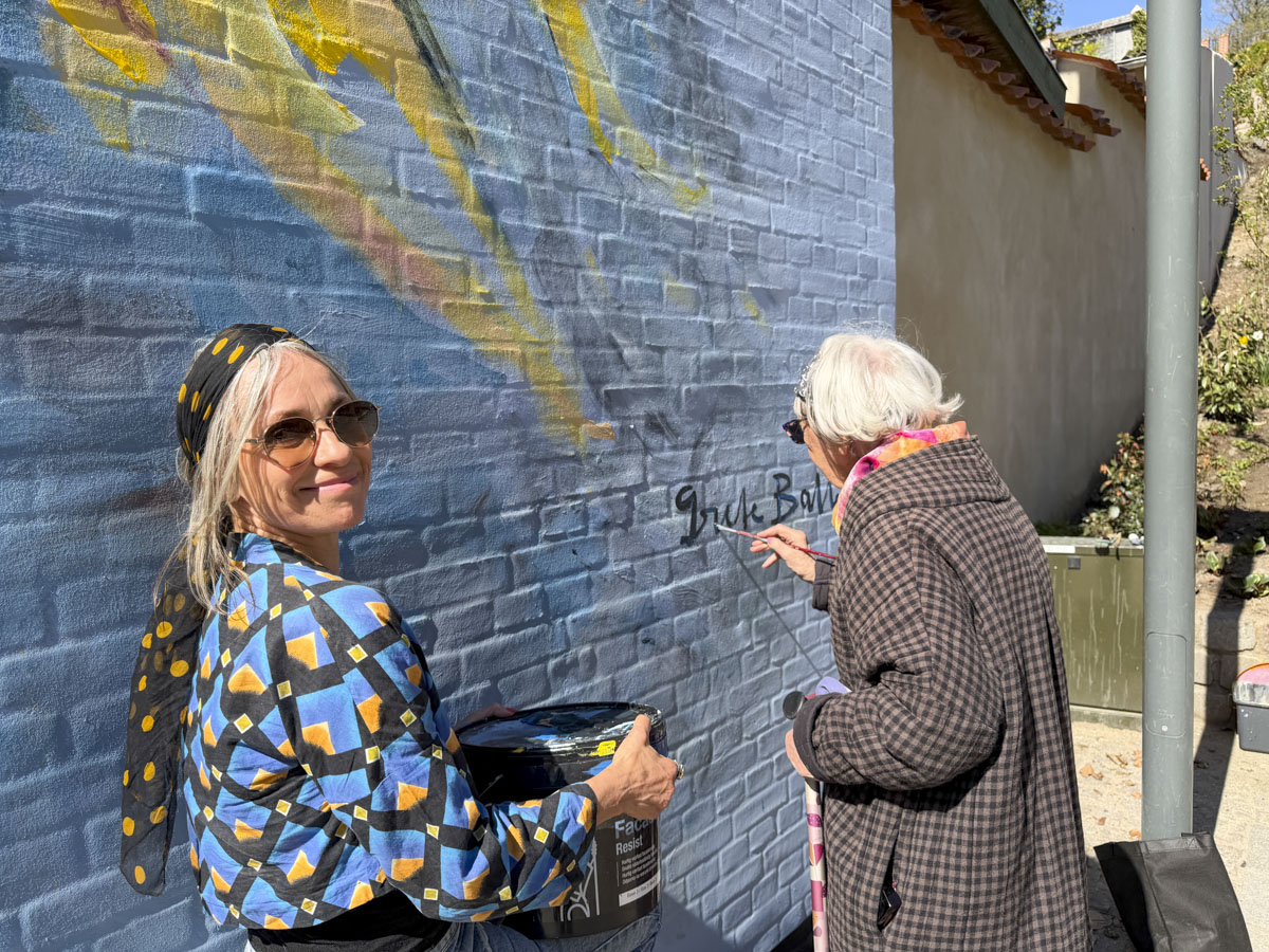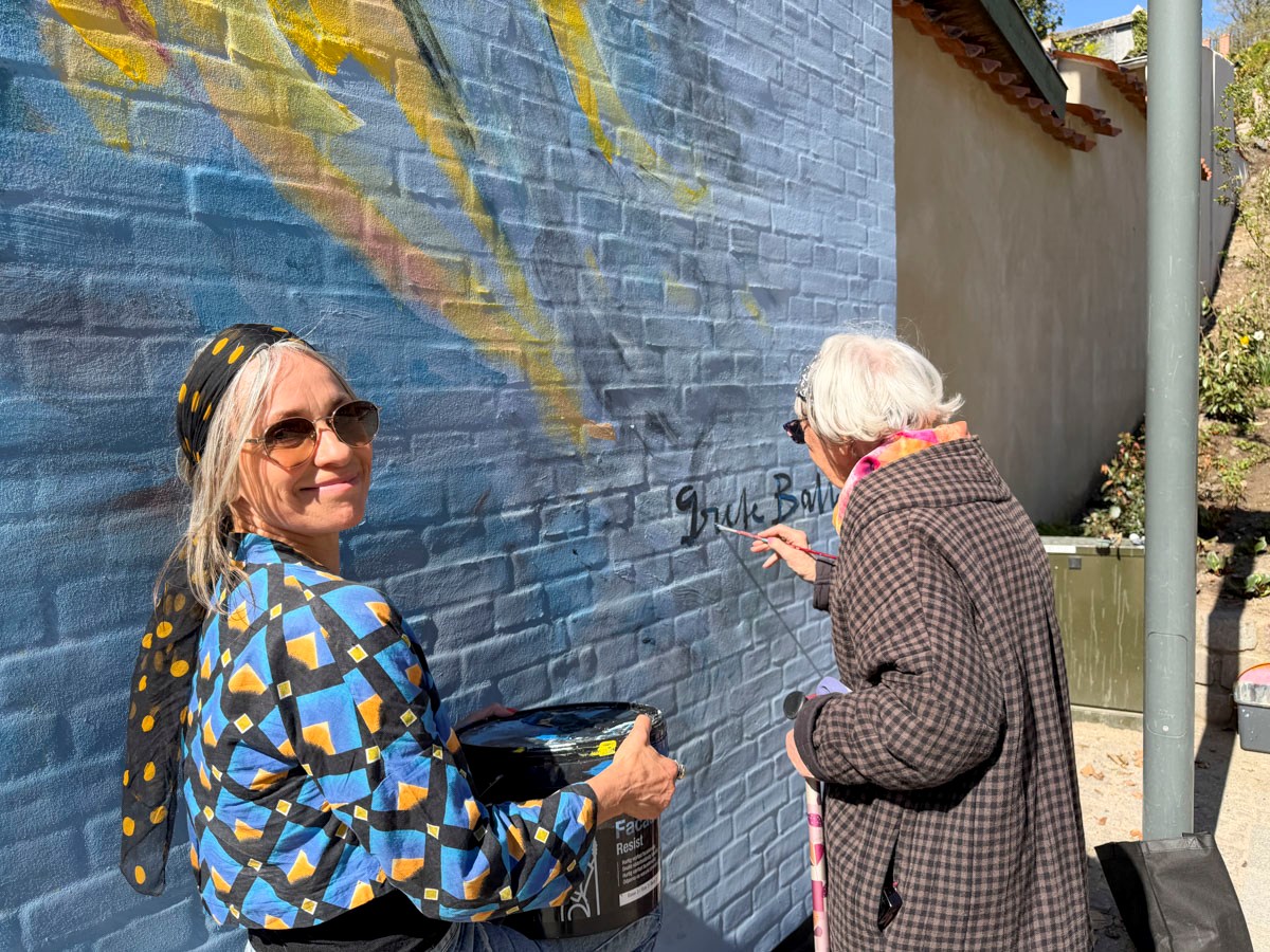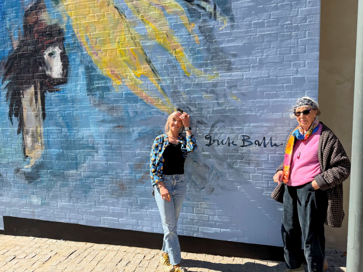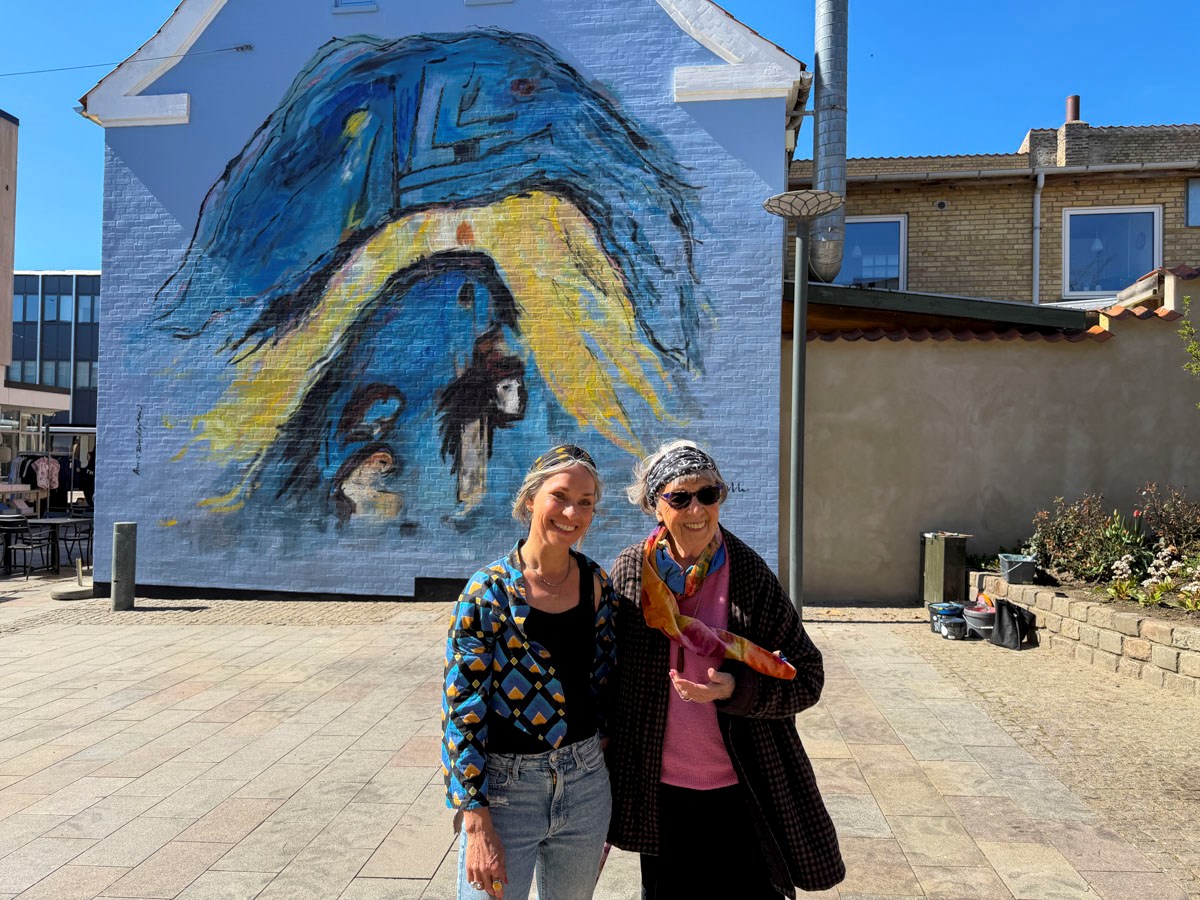 Det er to uger siden, de første streger til Grete Balles gavlmaleri blev sat af Anne Bundgaard. Torsdag eftermiddag blev værket fuldendt med de to kunstneres signaturer.