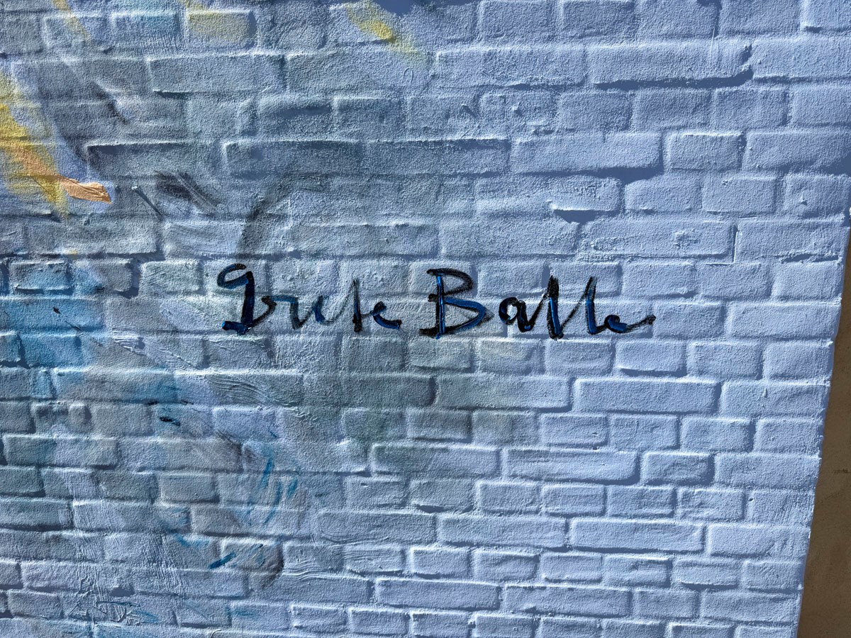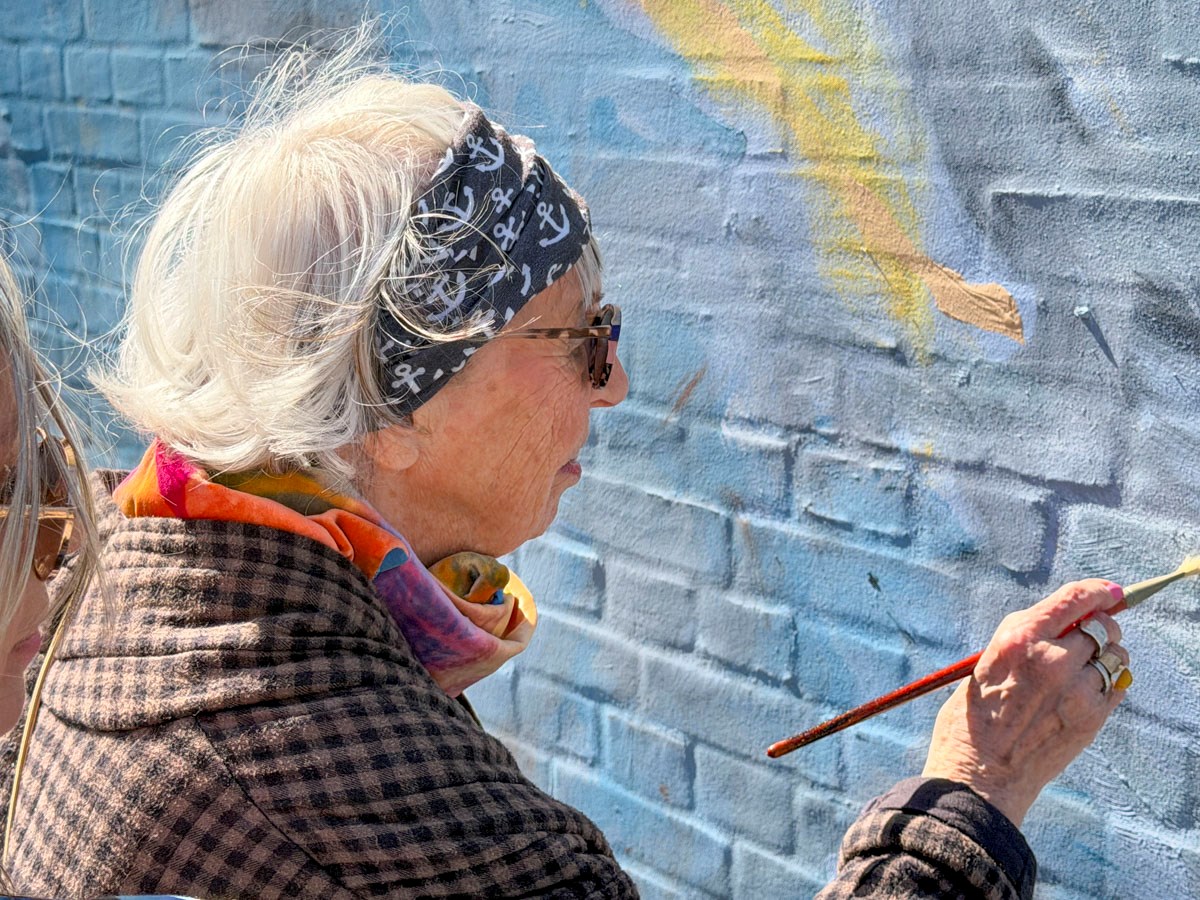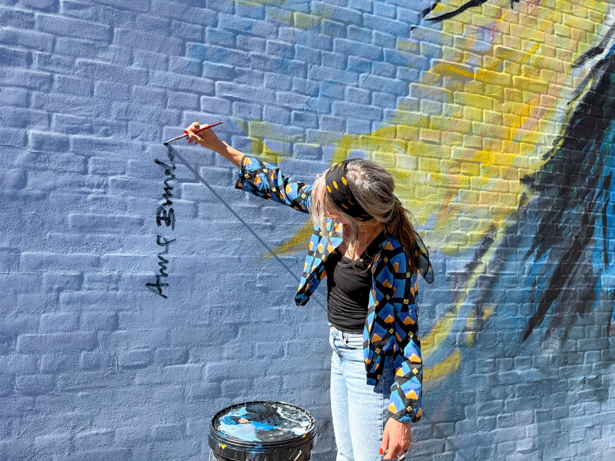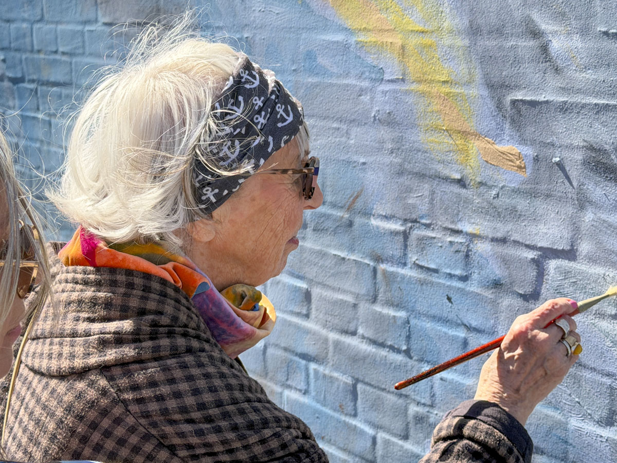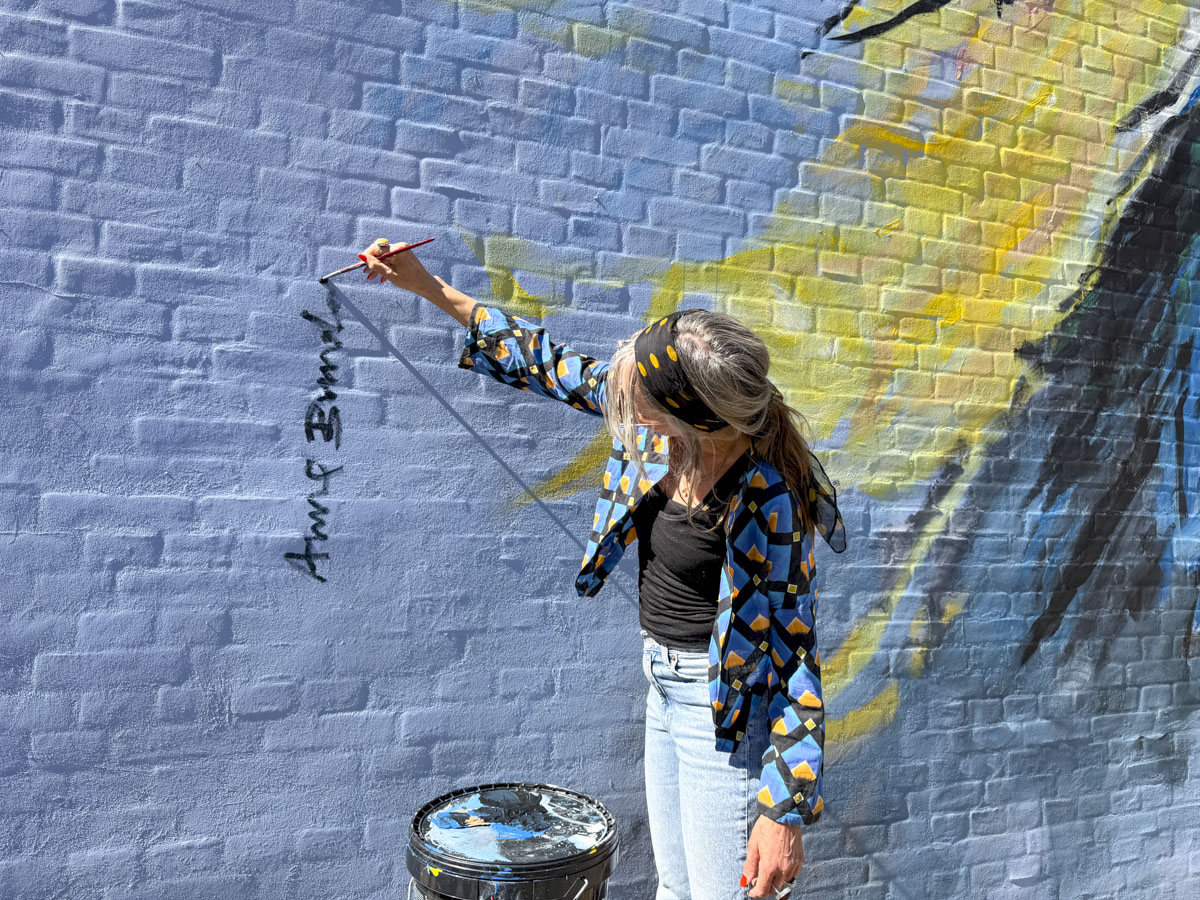Det er to uger siden, de første streger til Grete Balles gavlmaleri blev sat af Anne Bundgaard. Torsdag eftermiddag blev værket fuldendt med de to kunstneres signaturer.