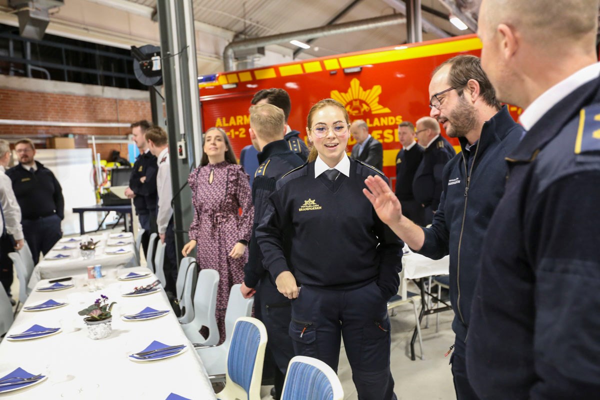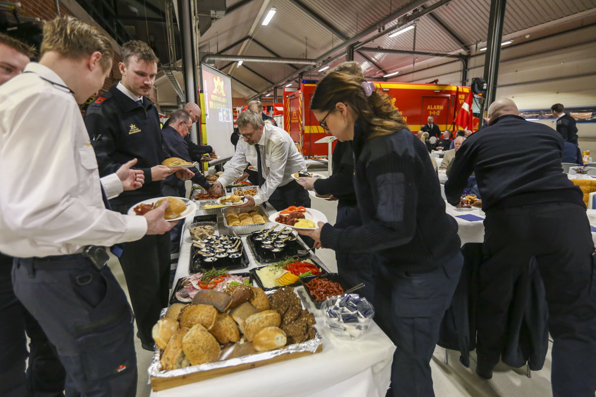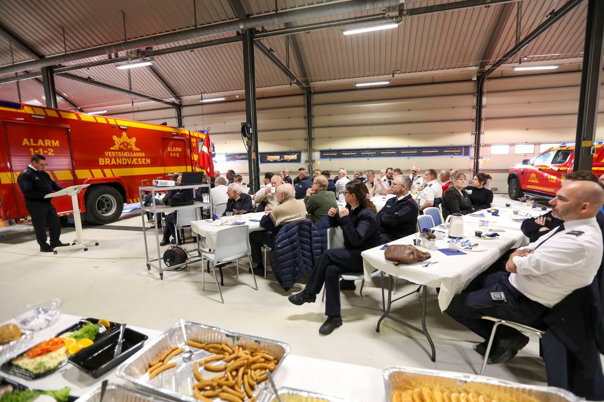 Der var omkring 50 deltagere til nytårsparolen hos Vestsjællands Brandvæsen, som holder til på Rynkevangen 12 i Kalundborg.