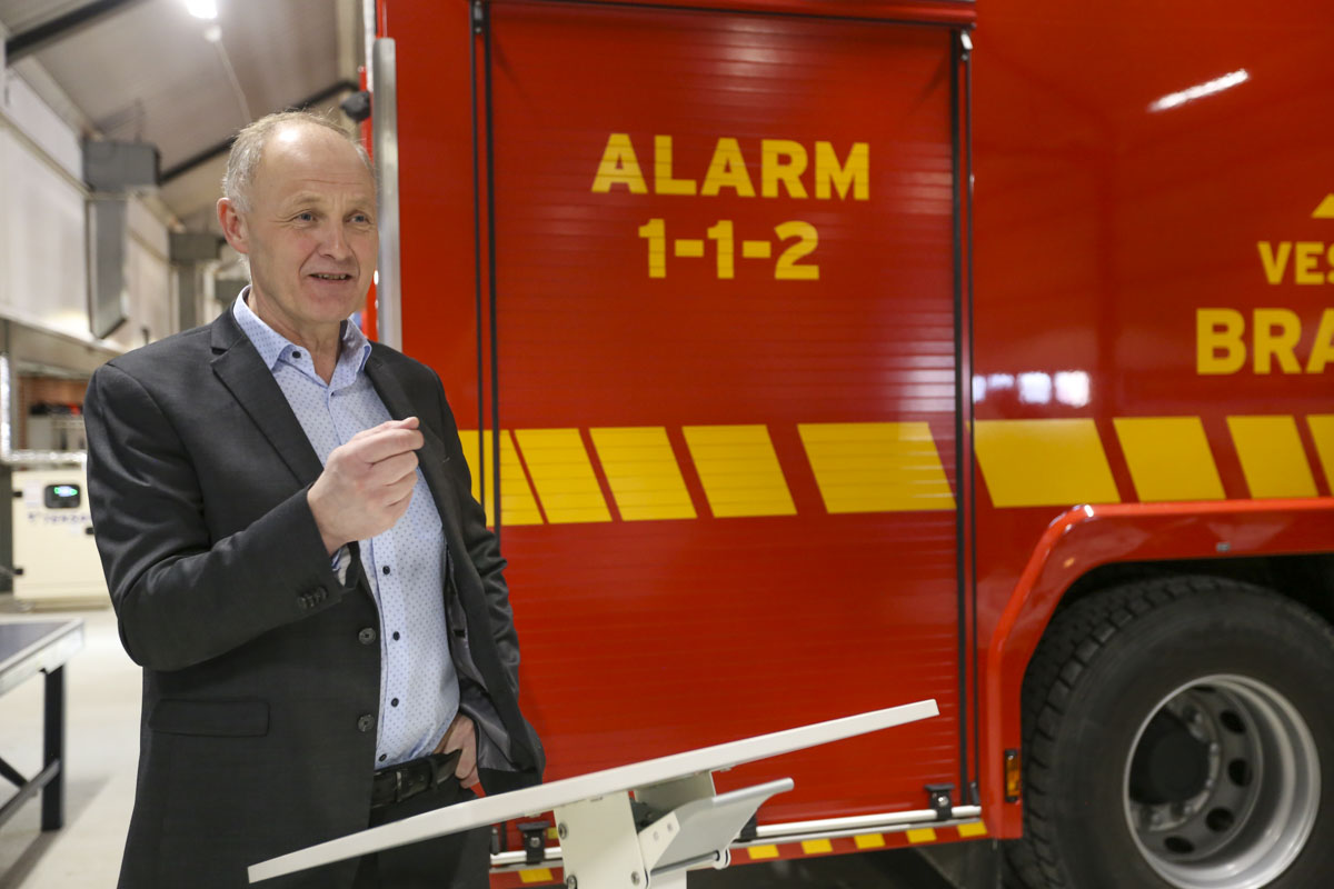 Per Hasselbalch var ikke den eneste på talerstolen. Også Lars Karlsen, der er beredskabsdirektør talte om opgraderingen af materiel og uddannelse af brandfolk. Blandt andet kom han ind på, at de mange nye typer batterier kræver ny viden.