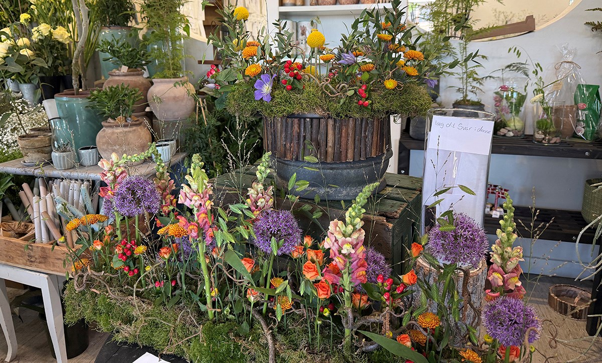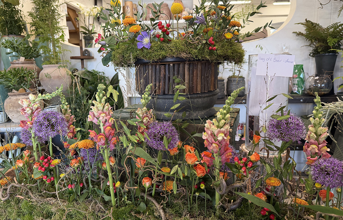 Freja Christiansen er uddannet blomsterdekoratør til sommer. Hendes dekorationer til begravelser/bisættelser vil være at se i butikken på Sct. Jørgensbjerg i Kalundborg frem til på lørdag.