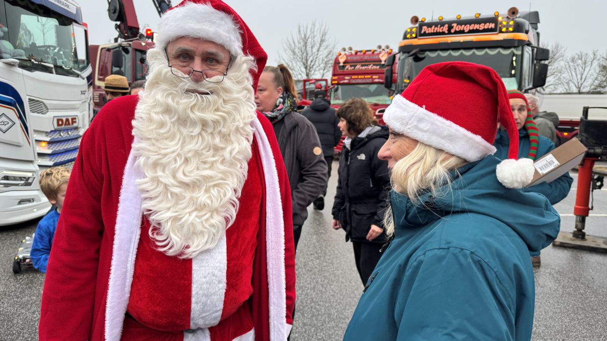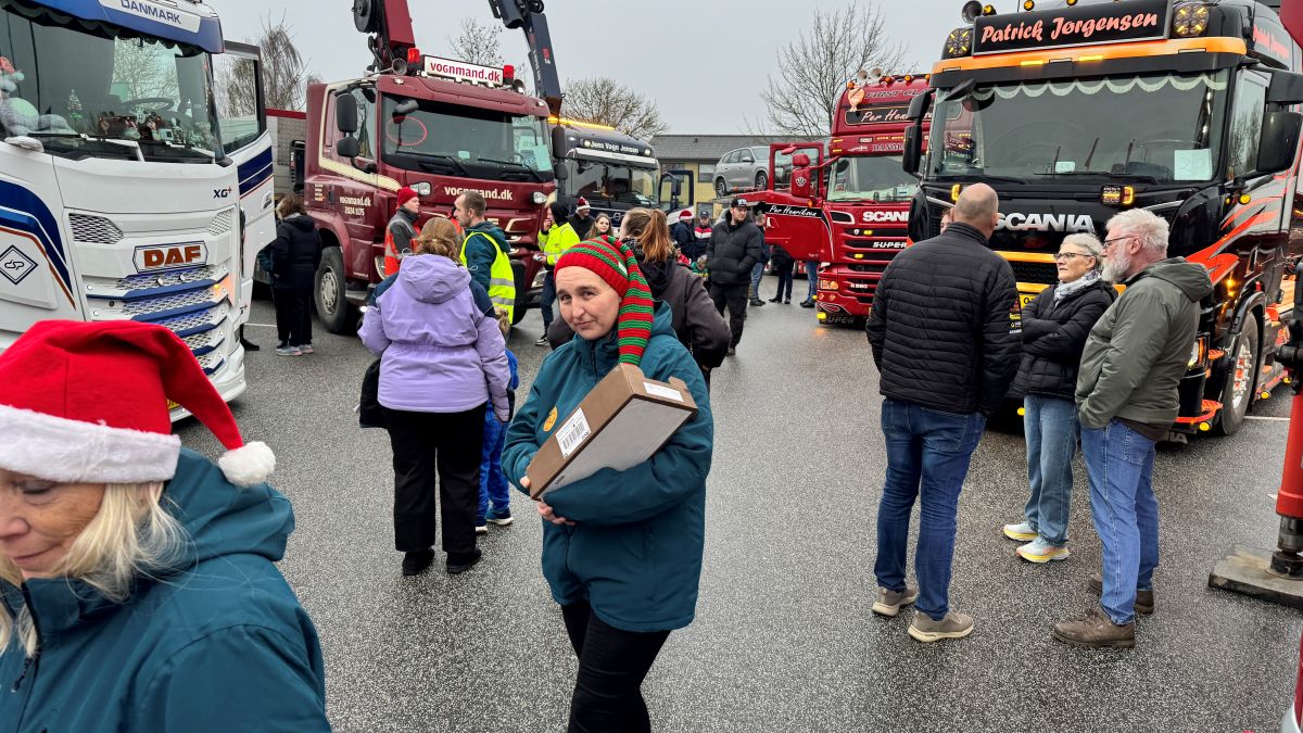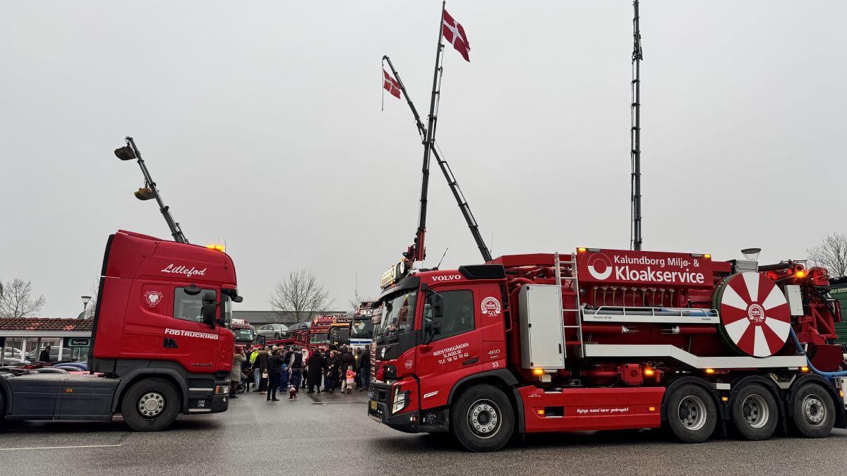 26 store lastbiler var lørdag linet op - sidespejl ved sidespejl - på parkeringspladsen foran Høng Centret.