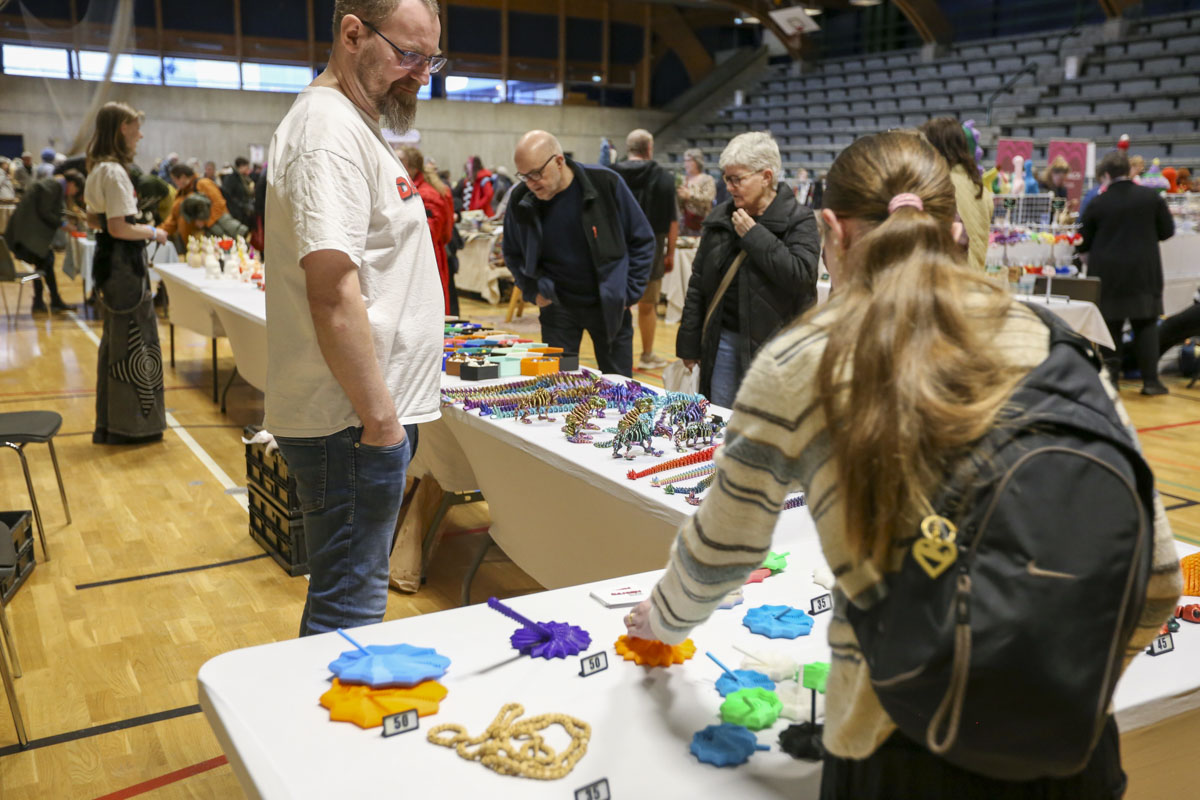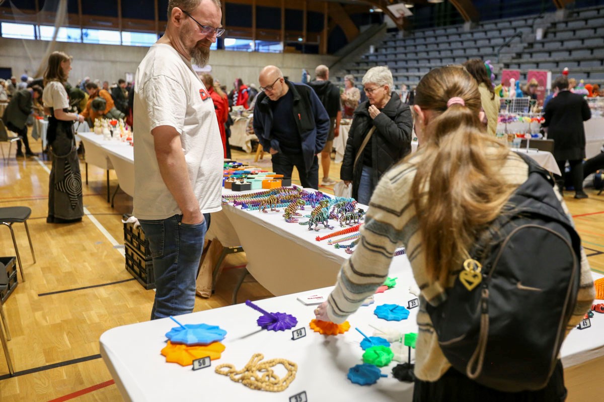 Selvom der ikke var fuldt hus hvad angår standene, var der masser af gæster, der gik rundt og lod sig inspirere. Blandt andet ved en stand fuld af stof, en anden med garn, en tredje havde perler med og så var der både en børstenbinder med mange flotte produkter og en trædrejer.