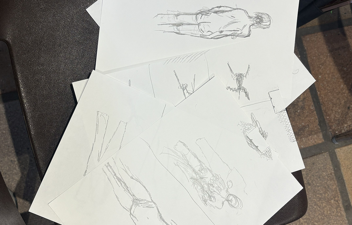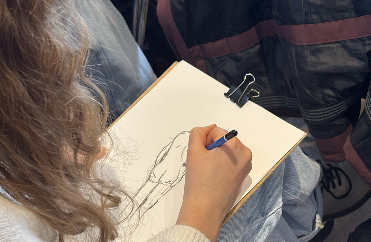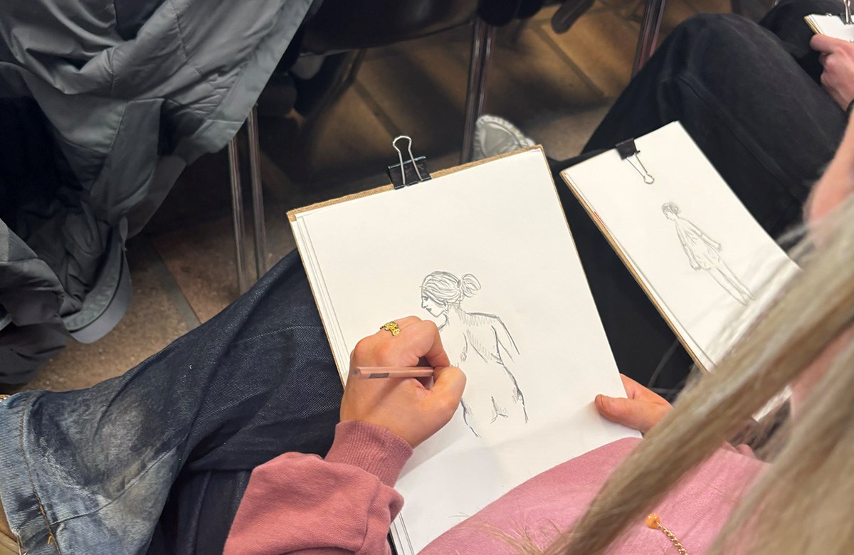 Som afslutning fik eleverne mulighed for at tegne croquis under faste rammer. Tegnesessionerne varede mellem 30 sekunder og fire minutter og stillede krav til forskellige teknikker. To modeller deltog: en 62-årig kvinde og en yngre mand, der er født med skoliose og sidder i kørestol.