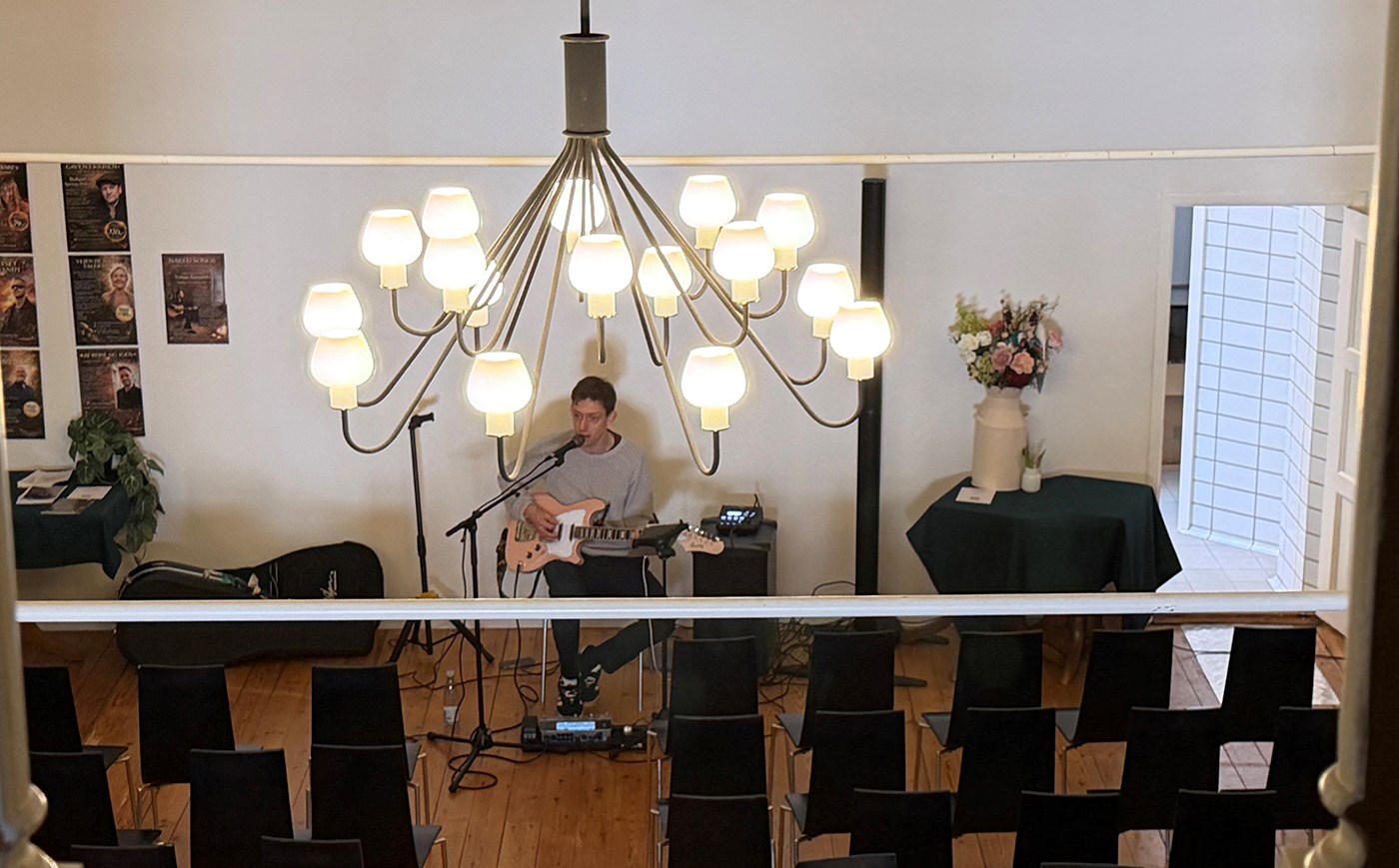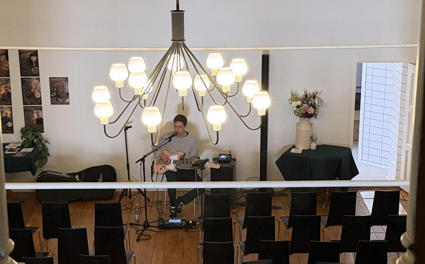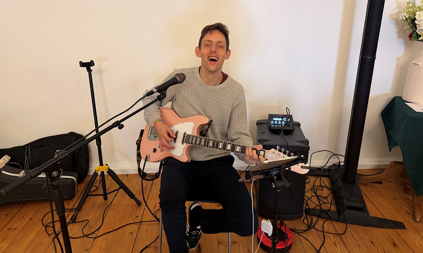 Kenneth Vester, forsanger i bandet Move Out, afprøvede anlægget inden receptionen startede.