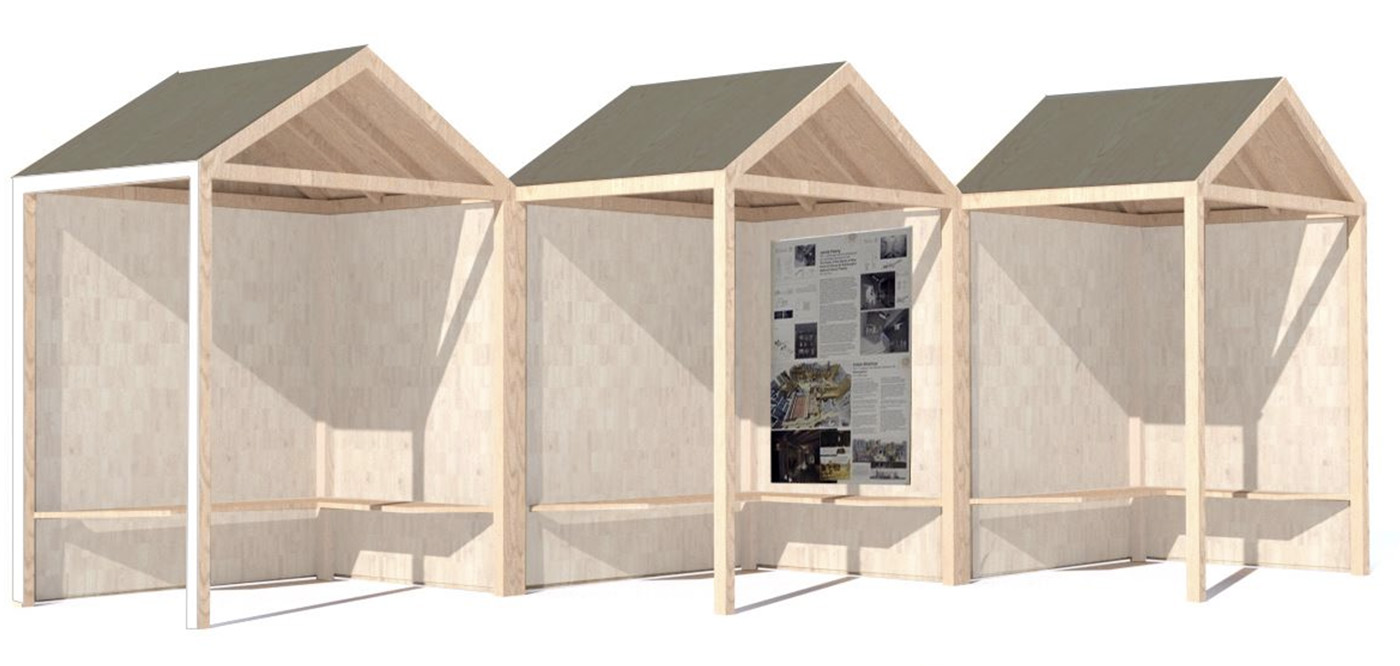 - Opstilling af små læsteder langs kajen kaldet ’fiskerhuse’. Fiskerhusene bliver farverige, visuelt genkendelige landmarks udformet med inspiration fra de lokale badehuse på Gisseløre og gamle fiskerhuse. Læstederne er designet som et hjørne af er hus, så de passer ind i de trekantede spildarealer mellem parkeringspladserne. De to vægsider med tag giver sammen med en indre vinkelbænk siddemuligheder i læ og tørvejr. På de indre vægge er der samtidig plads til udstilling, som kan opleves, når man spadserer langs promenaden. Gruppen forestiller sig, at første udstilling skal give plads til at formidle byens forskellige interessenters visioner for byens udvikling. Derefter kan en permanent udstilling om havnens historie overtage pladsen.