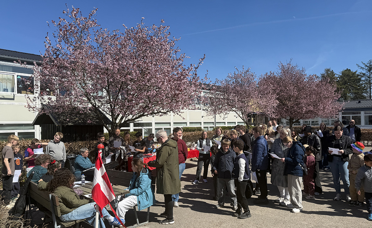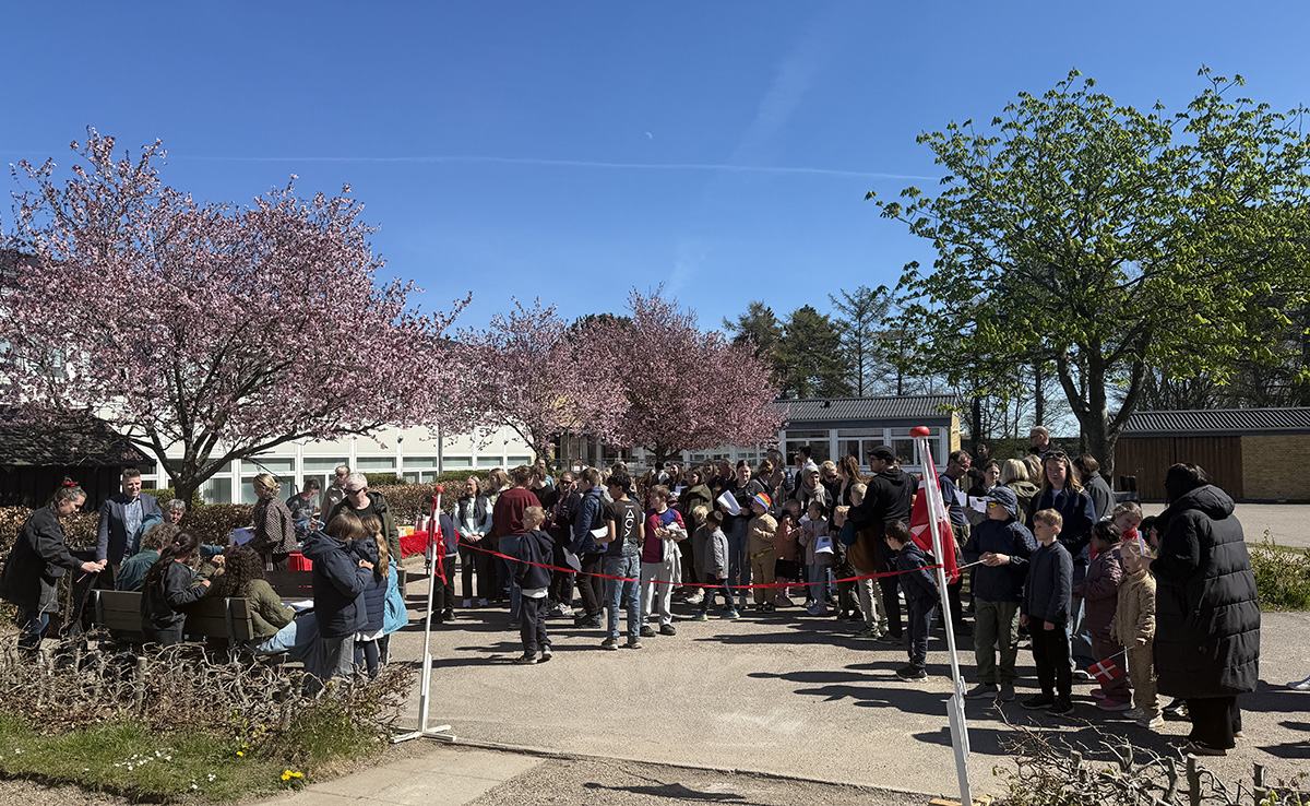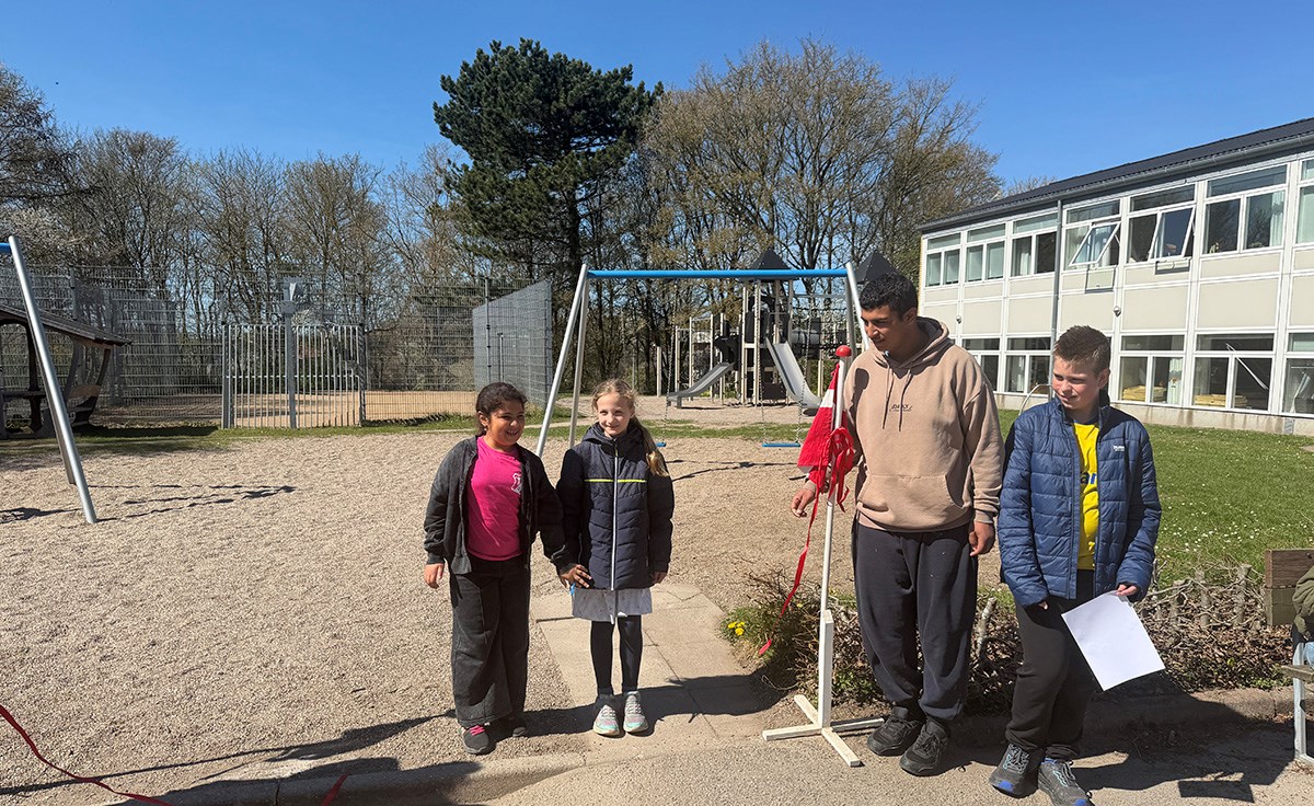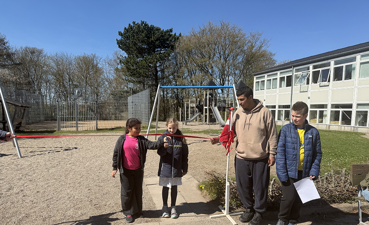 Det var to elever fra elevrådet, der fik æren af at klippe den røde snor. Herefter strømmede børnene til det nye legetårn, hvor glæden var tydelig blandt de fremmødte i det gode forårsvejr.