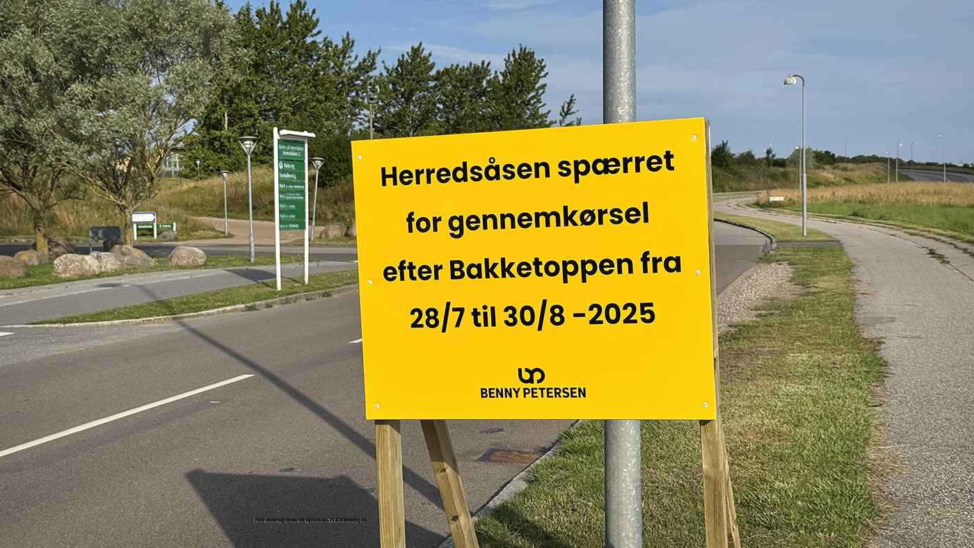 Herredsåsen er spærret for gennemkørende trafik frem til d. 30. august mens der graves fjernvarmerør ned.