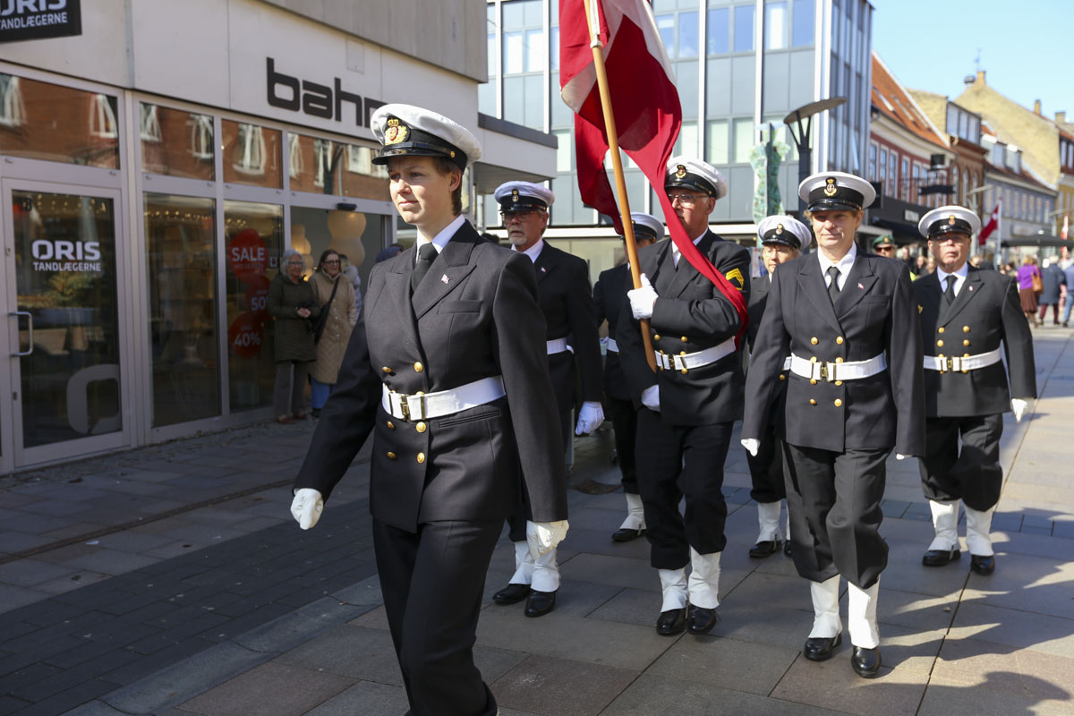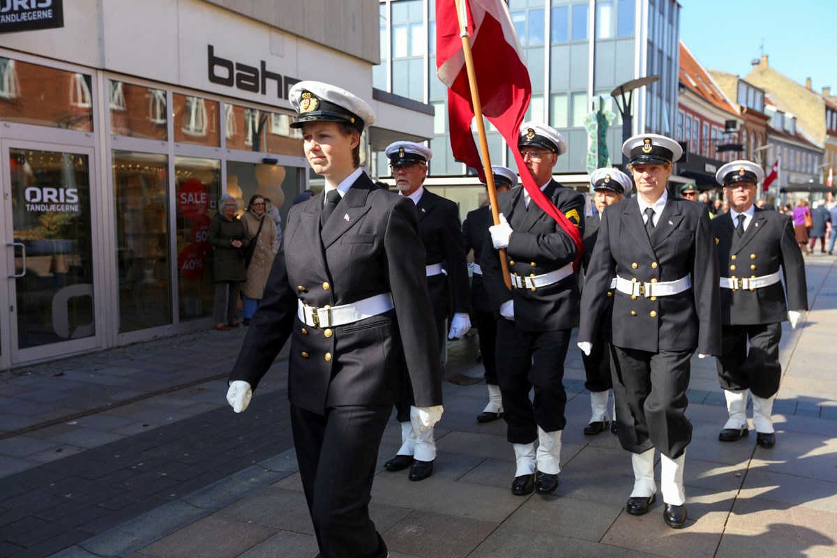 Der var rekordstor tilslutning til Os i Uniform på Vestre Havneplads lørdag over middag. Foto: Charlotte Koefoed