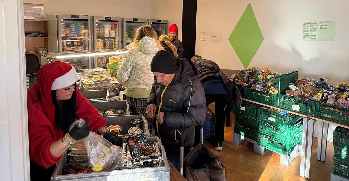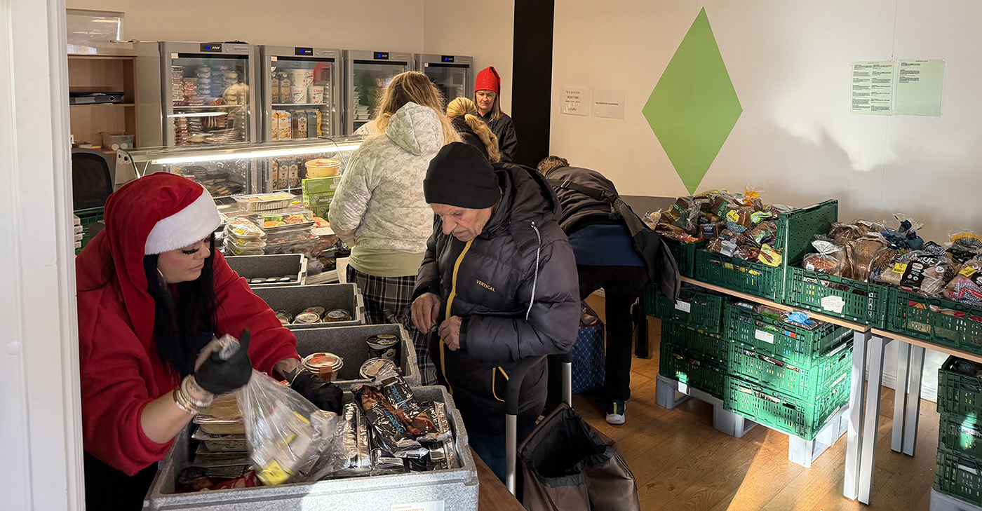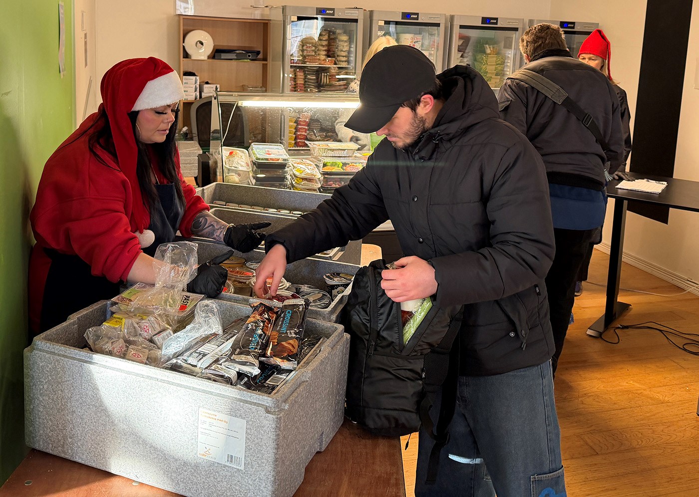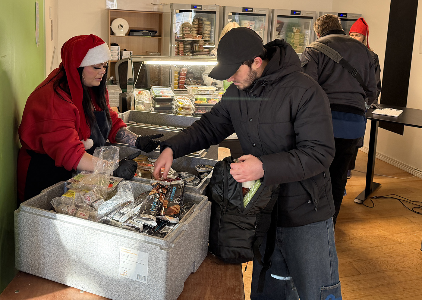 Masser af frivillige ildsjæle brugte det meste af deres lillejuleaften til at får styr på alt den overskudsmad som var samlet ind efter byens supermarkeder, var lukket.