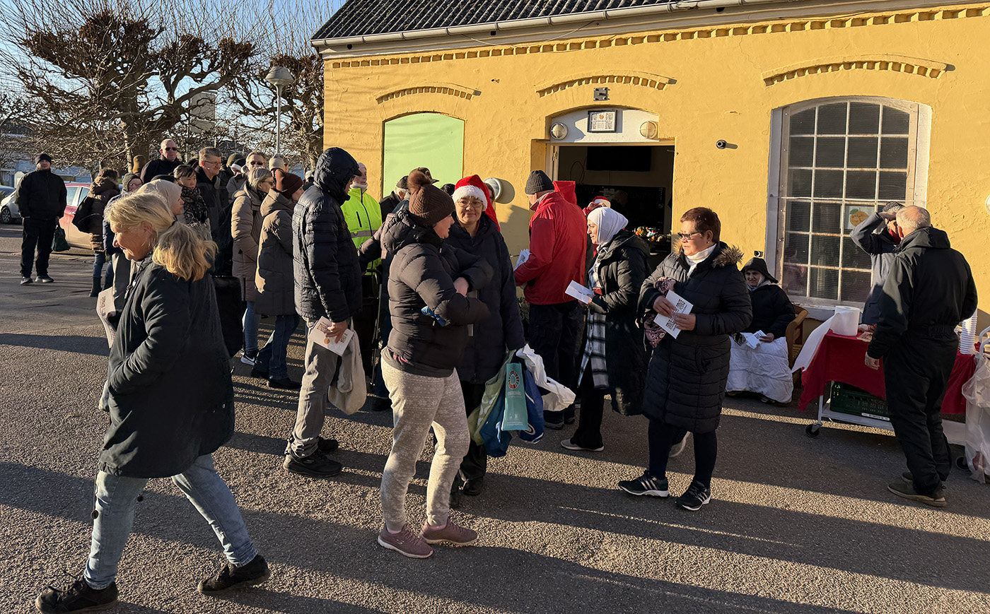 Overskudsmad fra en række af byens supermarkeder blev juleaftensdag delt ud fra Madbanken Kalundborg i Bredgade og interessen var stor.