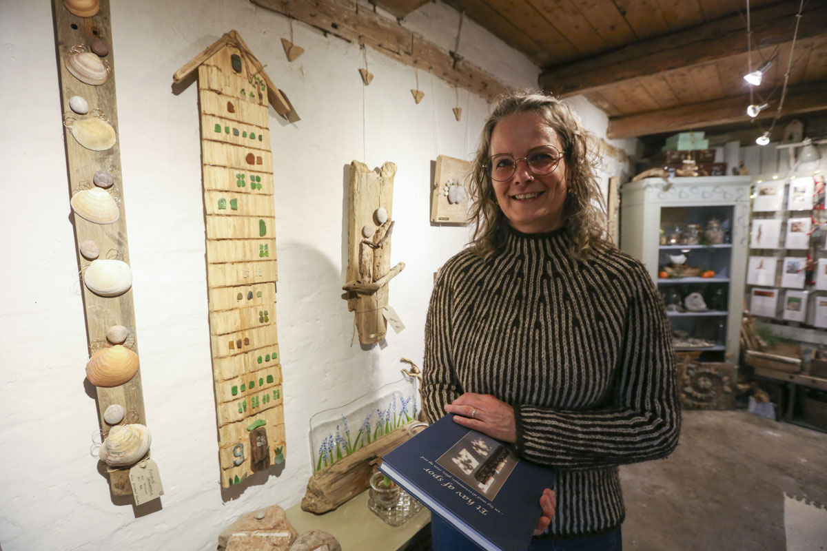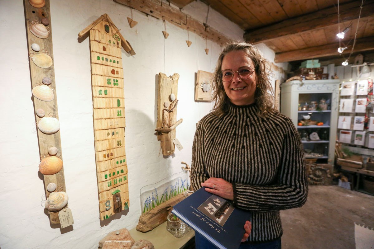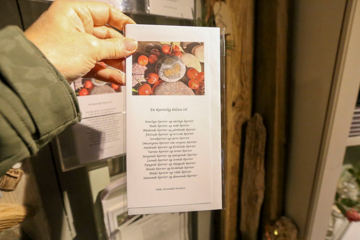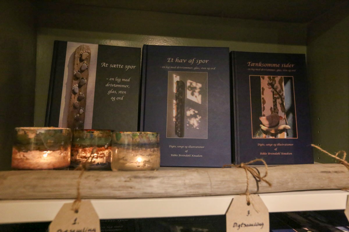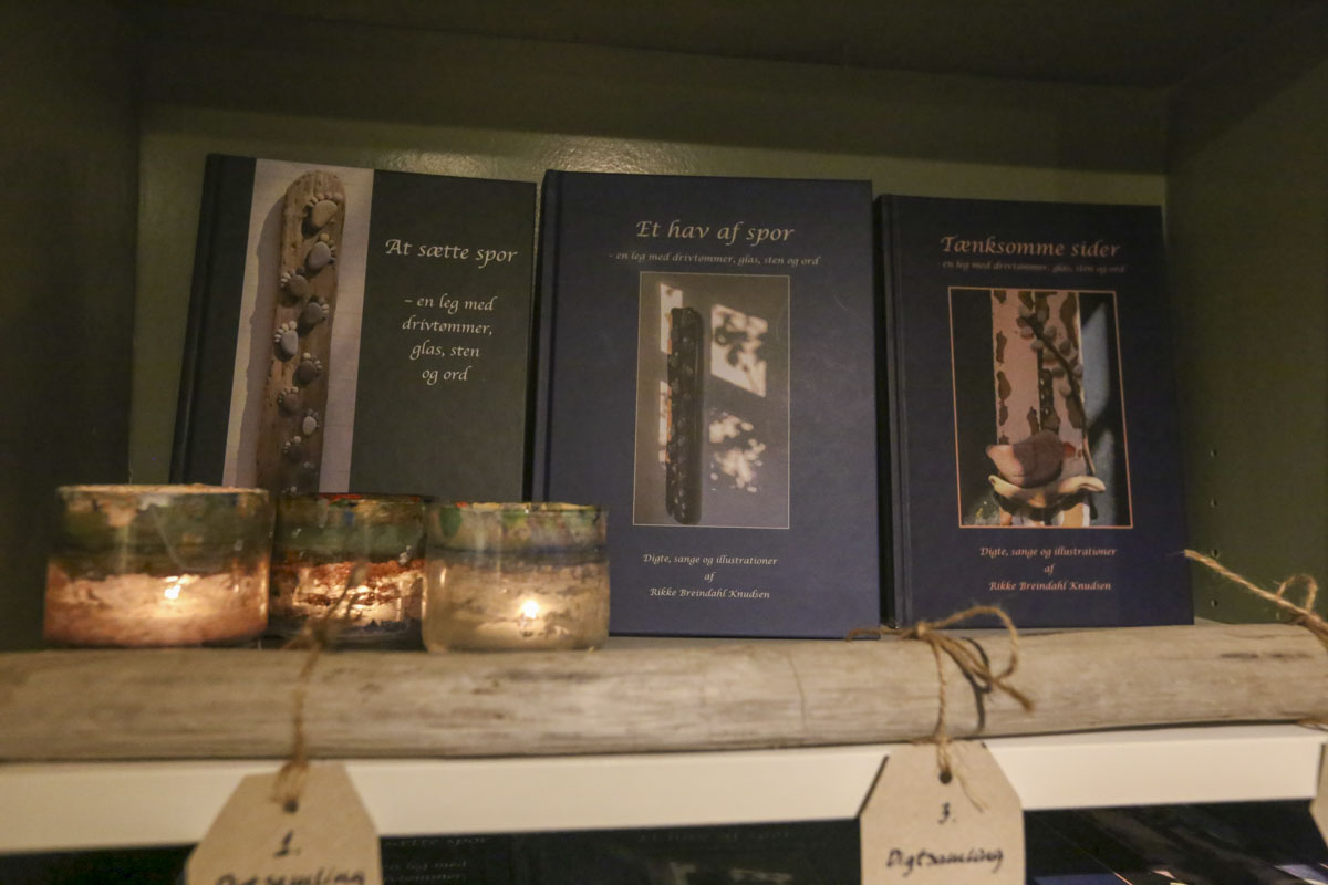 For ud over digte laver Rikke Breindahl Knudsen kunstværker af objekter – sten og drivtømmer – som hun finder ved havet.