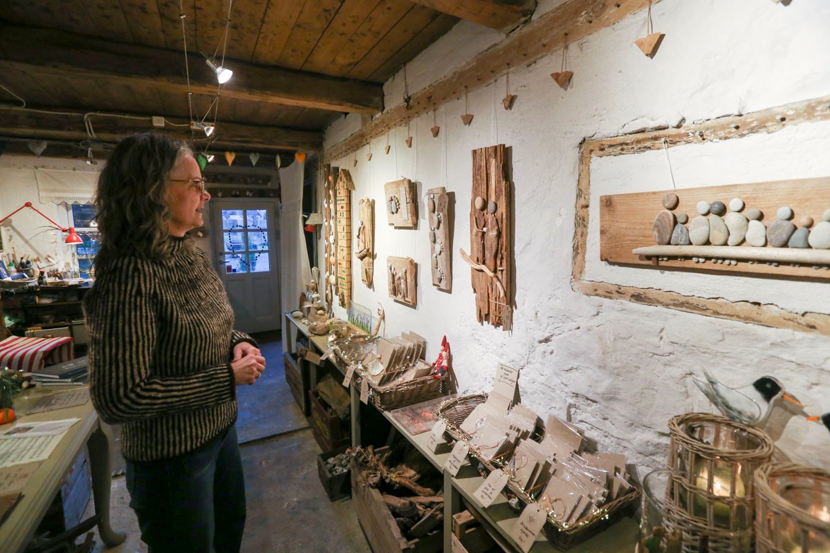 "Jeg elsker at gå tur ved stranden og finder for eksempel sten, glas og drivtømmer, som jeg tager med hjem. Når jeg så sidder her i værkstedet, kommer værker frem. Nogle gange taler tingene til hinanden," fortæller Rikke Breindahl Knudsen.