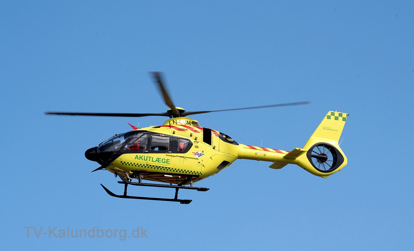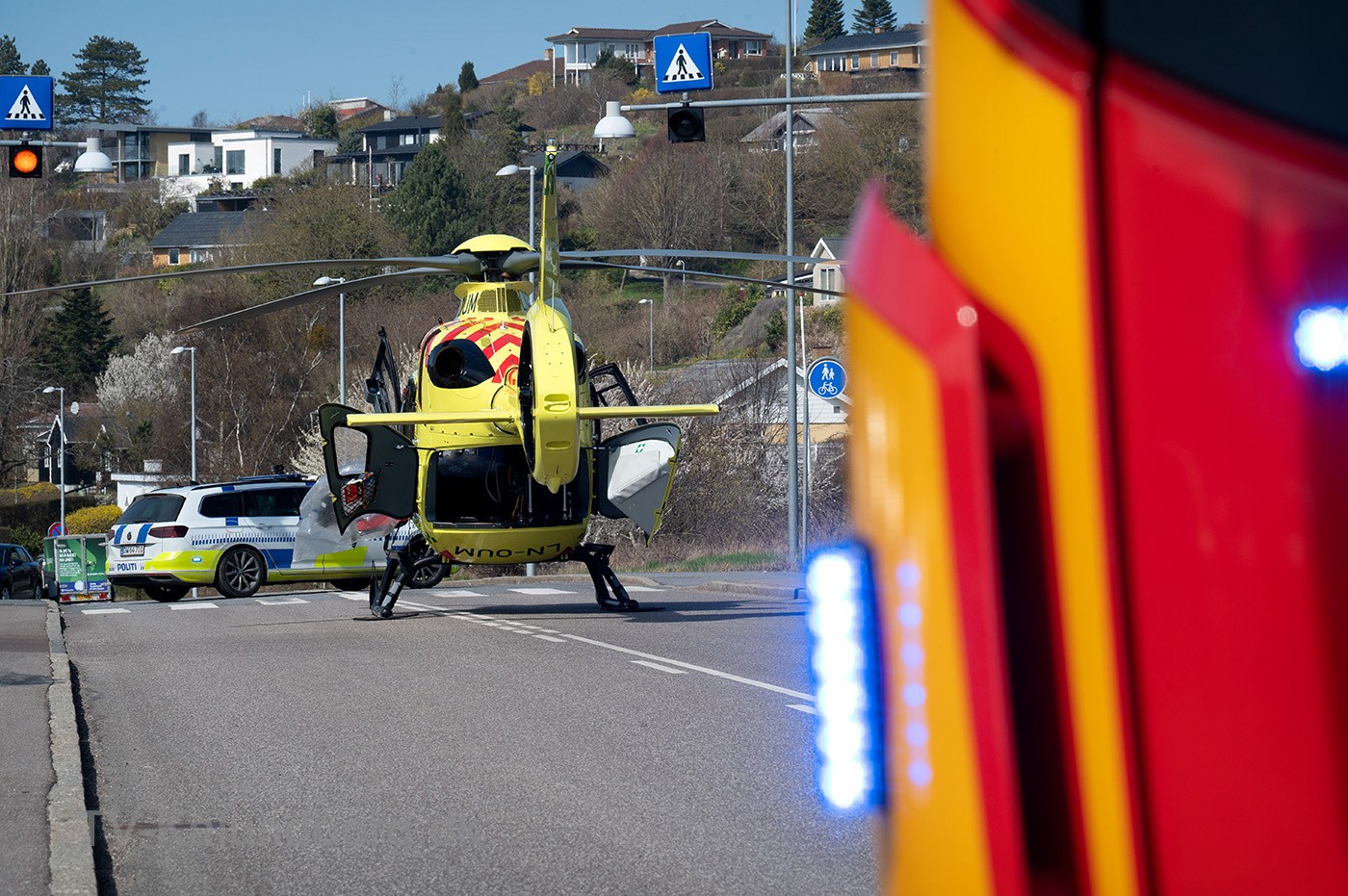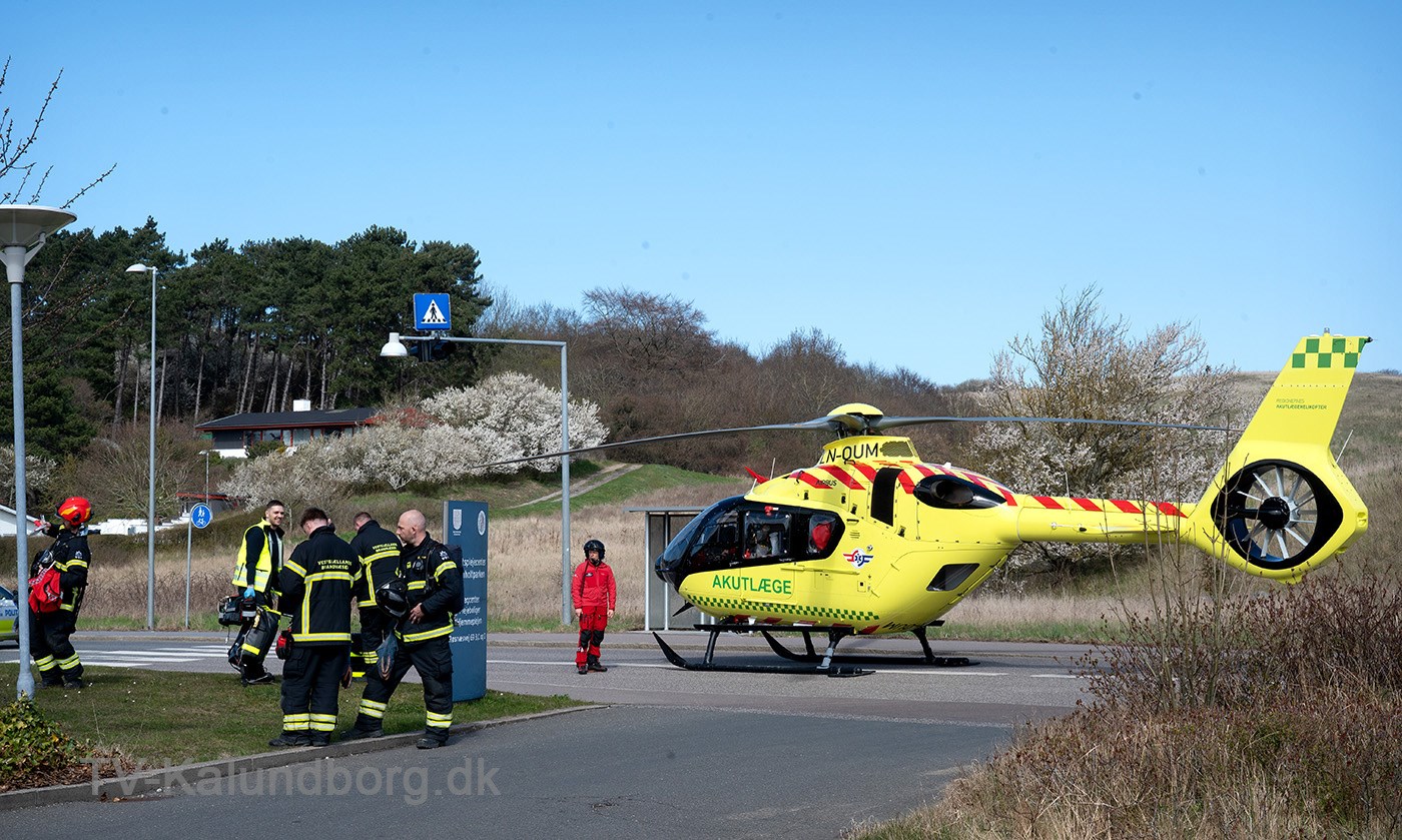 Lægehelikopteren landede på Røsnæsvej og derfor var vejen helt spærret for trafik mens redningsfolkene arbejdede på plejecentret.