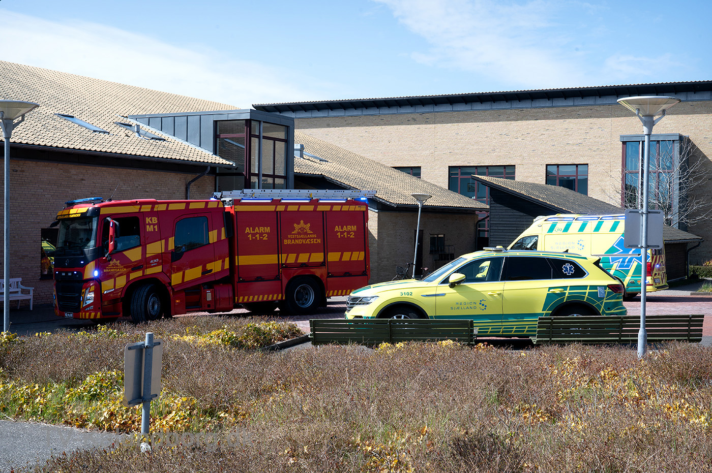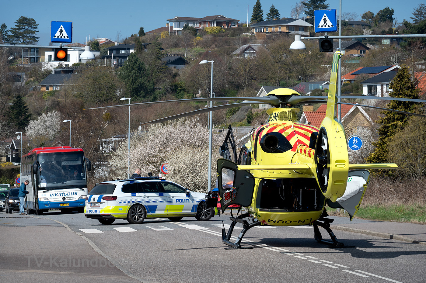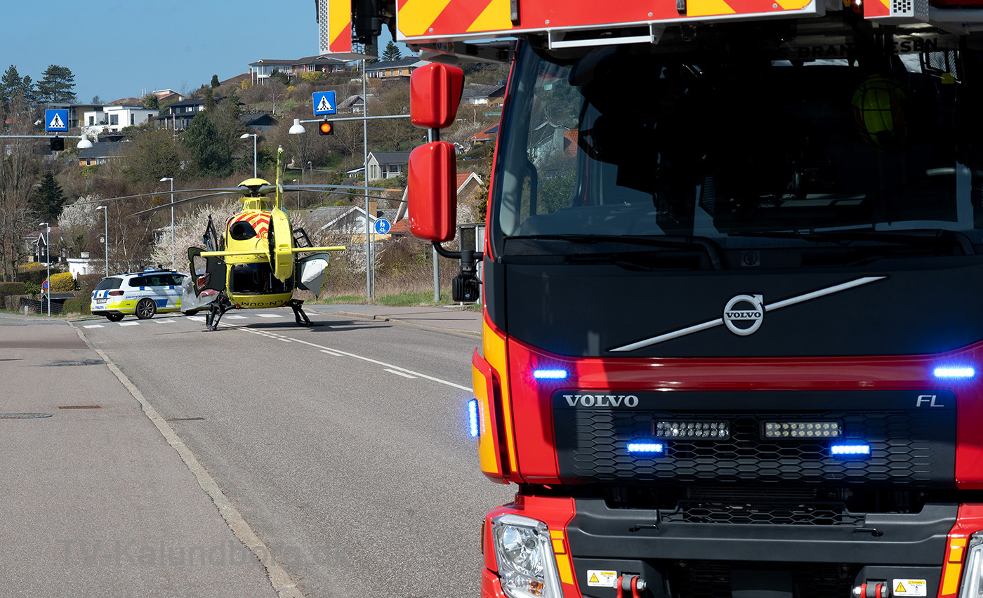 Lægehelikopteren landede på Røsnæsvej og derfor var vejen helt spærret for trafik mens redningsfolkene arbejdede på plejecentret.