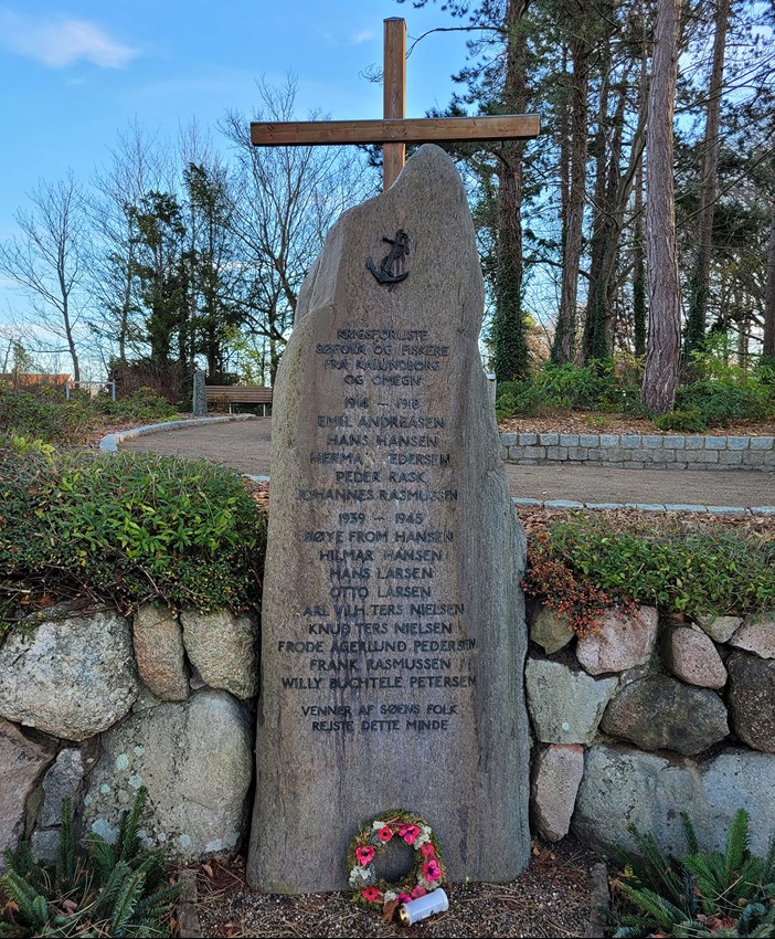 Krigsmindesmærket for danske søfolk på Sct. Olaikirkegård i Kalundborg. Her finder man begge brødres navne, Knud og Carl. Foto: Michael Jamni Nielsen.