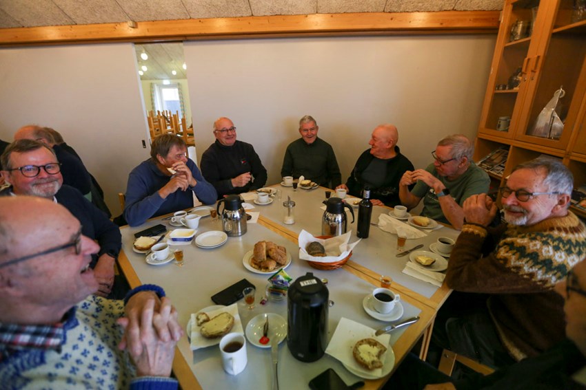 “Der er fire mænd, der sørger for en sild og en varm ret og måske en kage til kaffen. Det er virkelig hyggeligt,” siger Leif Schädler.