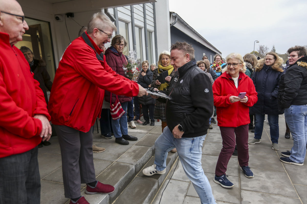 Udlejer Flemming Rasmussen fra Moderne VVS var også til stede, og han fik sin egen helt specielle gave, et skilt, hvor der stod 'Flemmings Plads'.