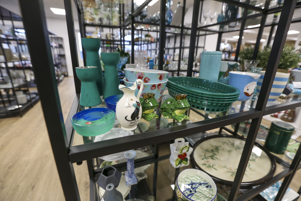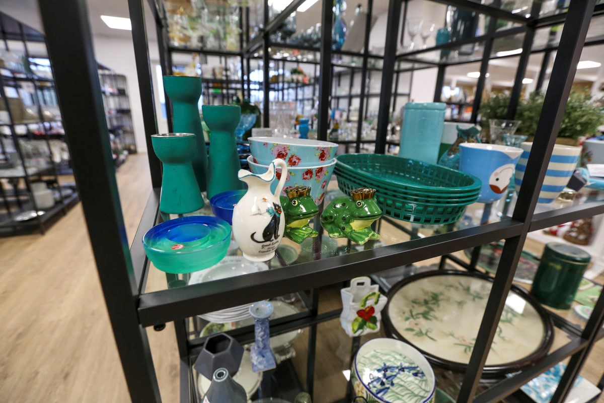 På førstesalen er der 300 hyldemeter med glas og porcelæn og ting til køkkenet, der er legetøj og elektronik og så er der blevet plads til et par nye tiltag.