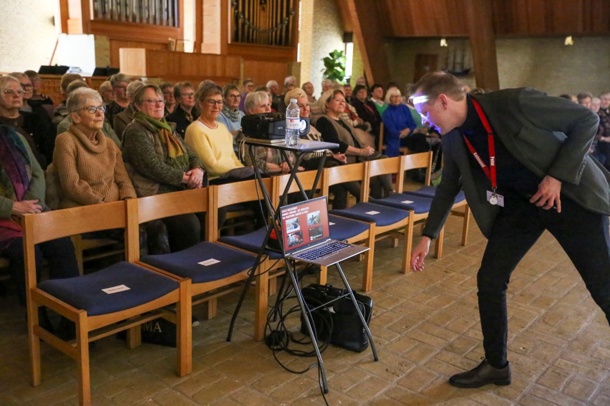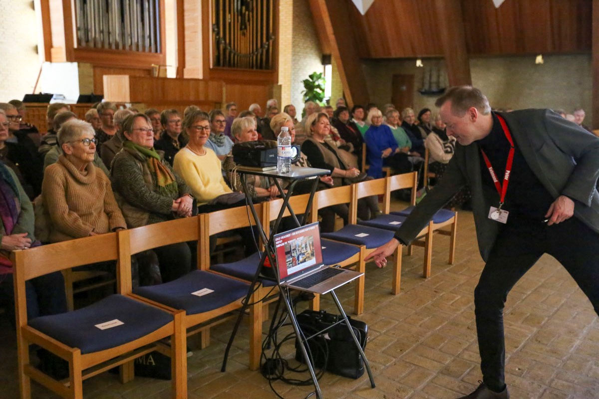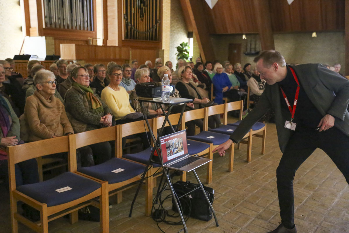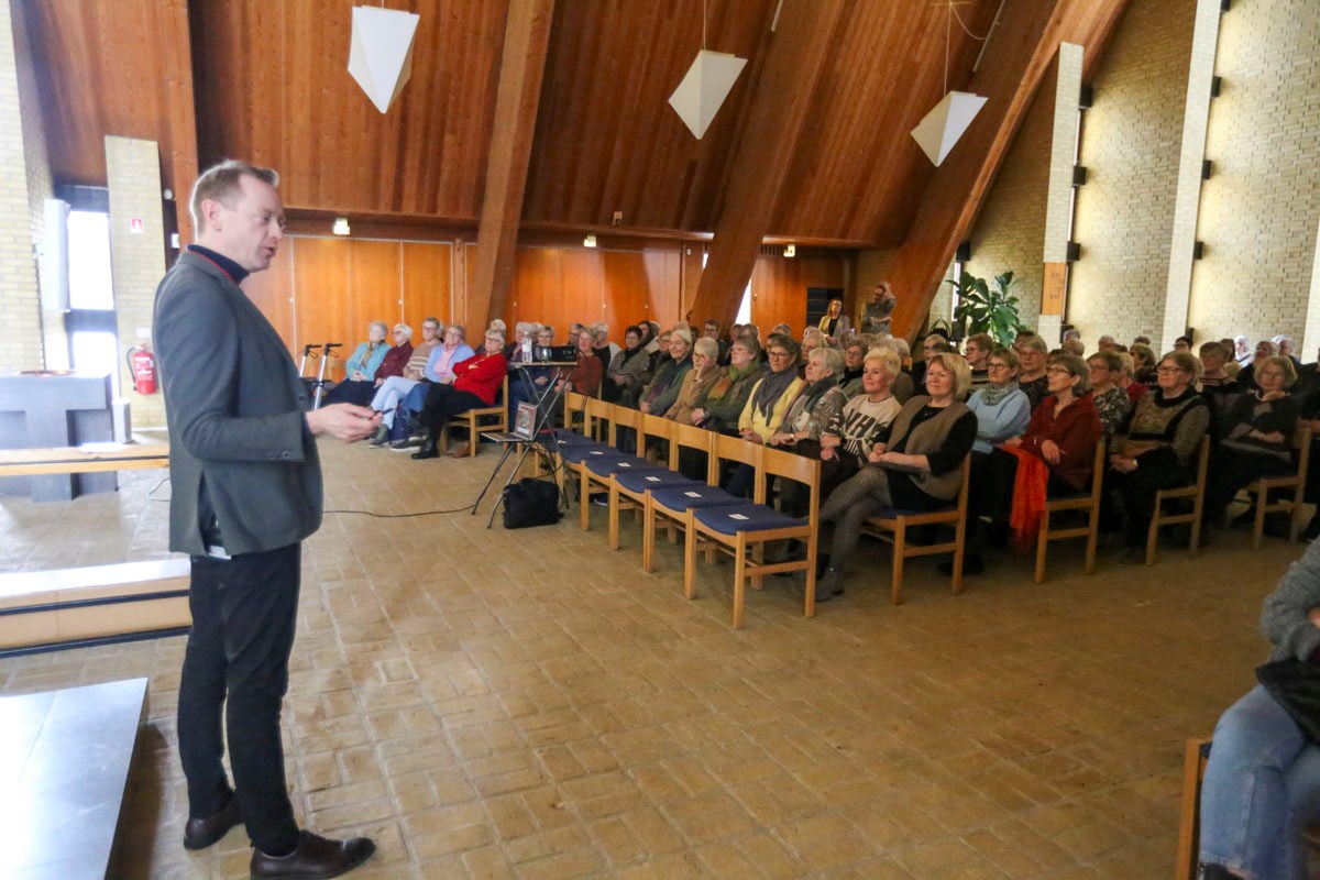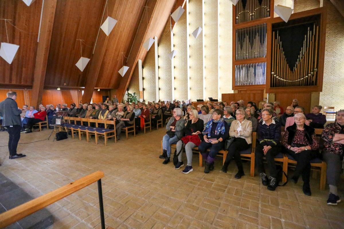 Foredraget var flyttet ind i selve Nyvangskirken, hvor der var bedre plads til de 120 kvinder, der havde meldt sig til.
