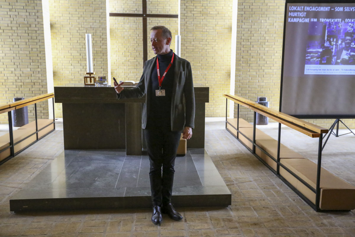 "Køkkenet roder helt vildt, vi har sved på panden. Jeg tror faktisk ikke, vi har haft så travlt før," smågriner Niels-Erik Sørensen, kirketjener i Nyvangskirken.