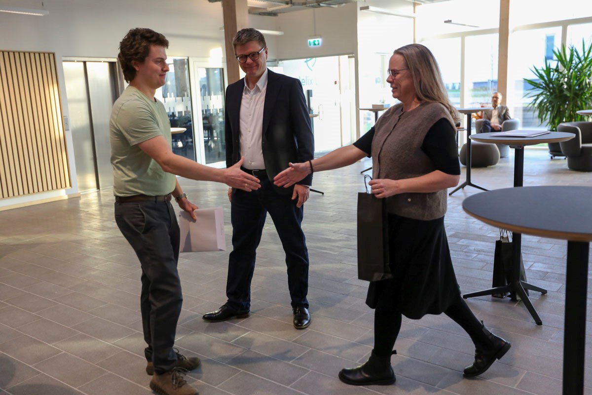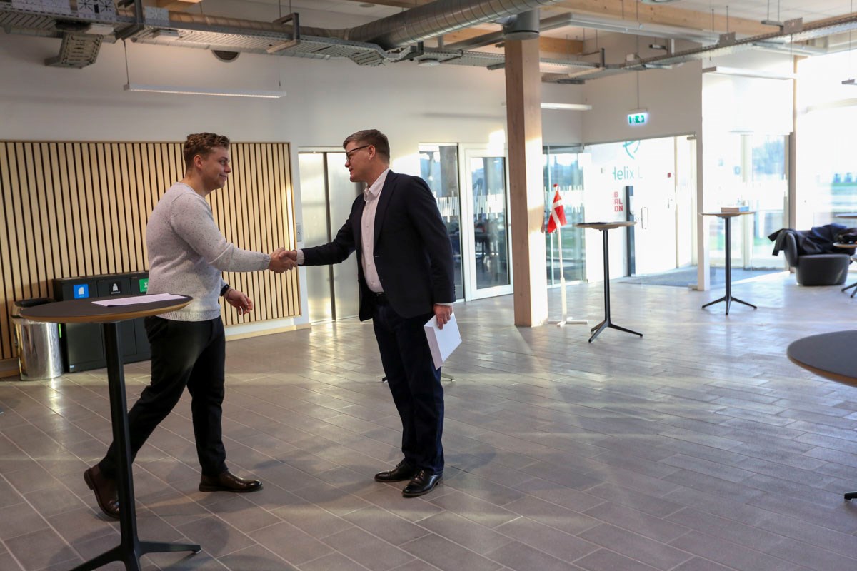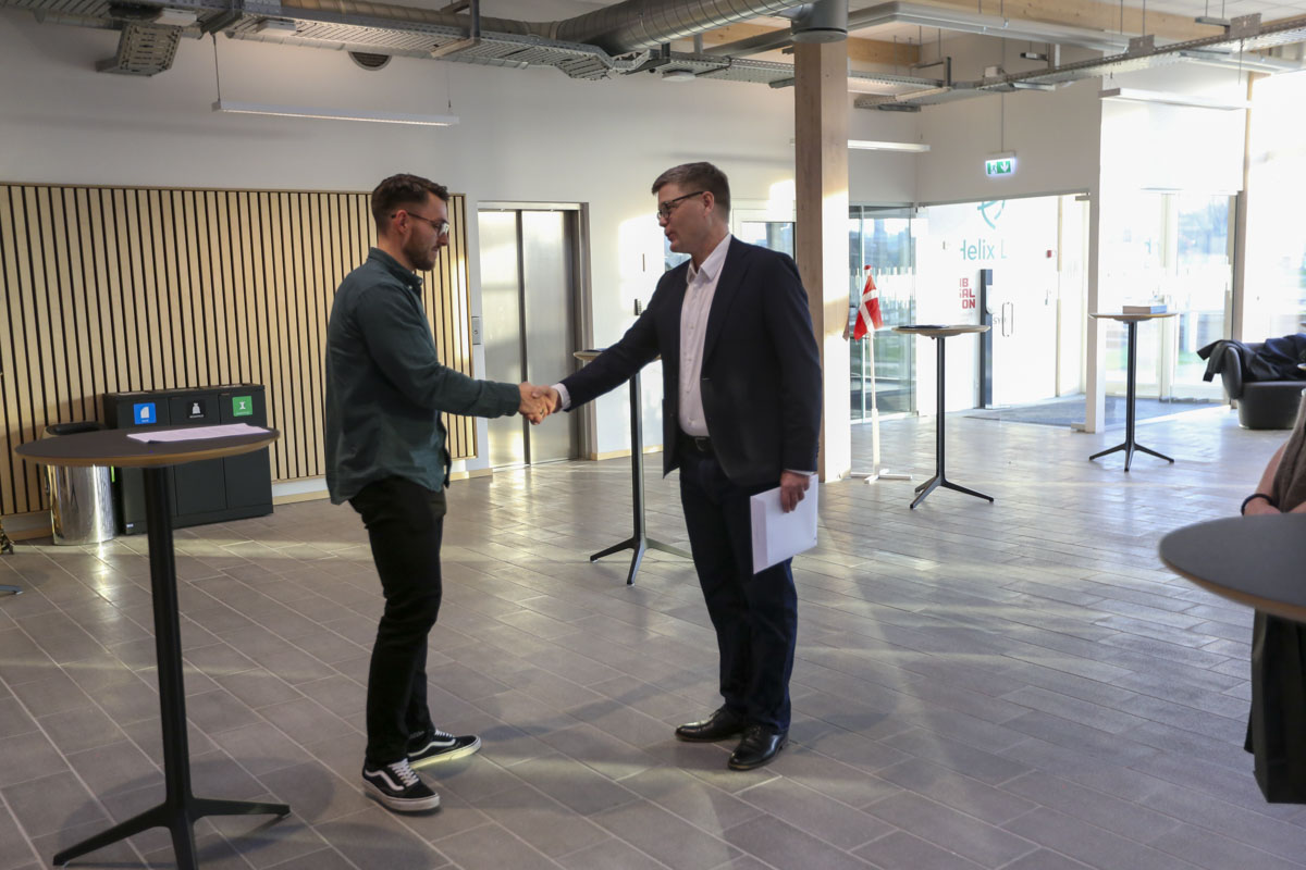 Det skete på Helix Lab, som Teknika i dagens anledning havde indtaget for at fejre de fire nye maskinmestre, nemlig Elias Juhl-Laugesen, Emil Marsilius Jensen, Emil Stampe Daldorf Jørgensen og Jeff Malling Henckel.