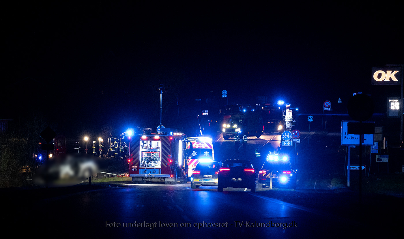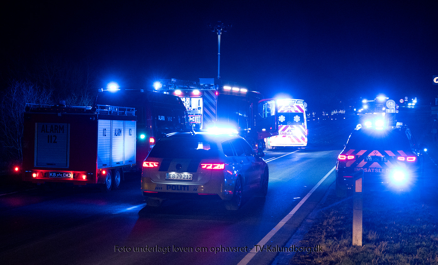 Politi, redningsmandskab og brandvæsen blev tilkaldt kl. 18.59 til Bjerge Landevej.