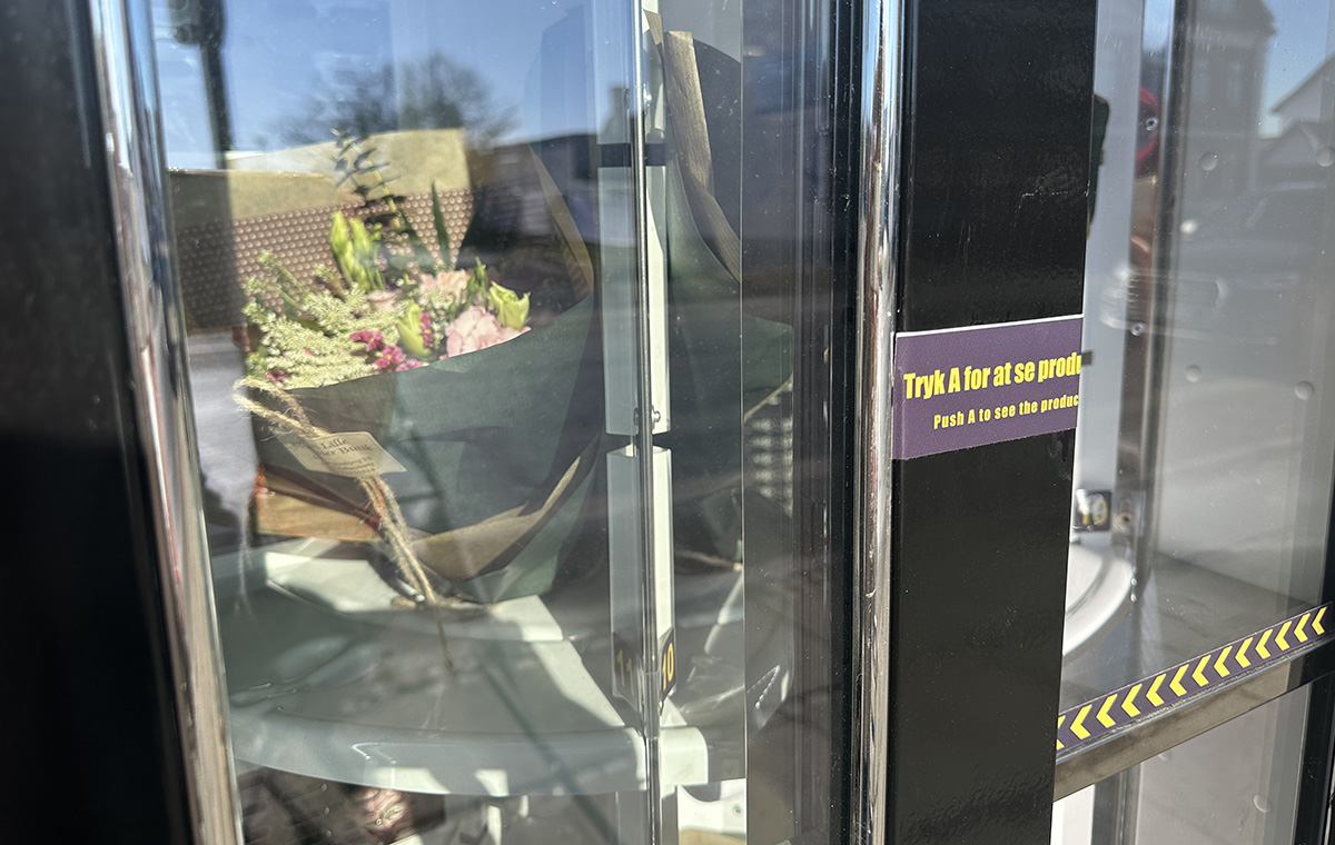 På fortovet foran Den Lille Blomsterbutik står nu en automat, hvor man kan trække friske blomsterbuketter og blot betale med sit kreditkort. Fuldstændig som man kender det fra slik- og eller sodavandsautomater. Det vil sige, at når butikken er lukket, kan man trække en frisk smuk buket blomster, da automaten konstant står på 10-11 grader, og buketterne er i vand.