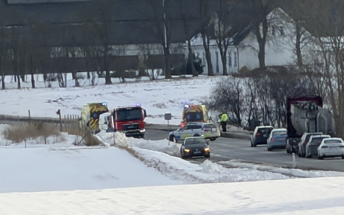 Der er derfor kø, og vejen er lige nu spærret i begge retninger. Det vides endnu ikke, hvad der er sket, eller om der er nogle tilskadekomne.
