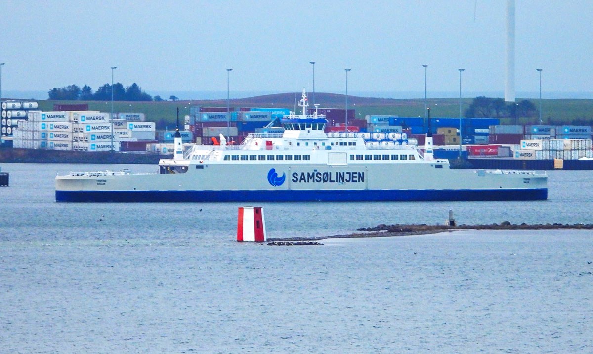 Så skete det endeligt: Samsølinjens nye el-færge Tyrfing, er kommet til Kalundborg. Den ankom onsdag aften.