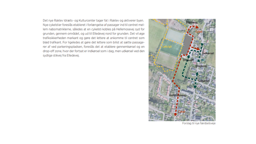 Raklev Gymnastik- og Idrætsforening (RGI) har med formand Esben Hansen i spidsen fremlagt en grandios helhedsplan for udvikling af Røsnæshallen: Halarealet skal mere end fordobles, så alle medlemmer kan dyrke deres idræt i hallen på Elledevej, nuværende som kommende: Anlægget skal udover håndbold, fodbold, badminton og gymnastik også tilbyde rammer for nye sportsgrene. Og med tilbud om overnatningsfaciliteter og café vil man invitere klubber udefra til at afholde store stævner på fridage. Alt sammen aktiviteter der vil skabe behov for flere parkeringspladser, nedslidning af den omkringliggende natur, mere støj, mere lys og ikke mindst afføde mere trafik.