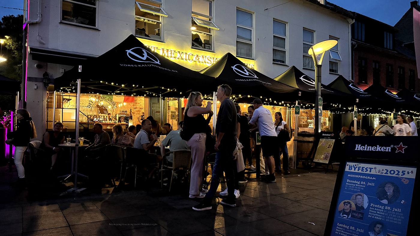 Flere af byens restauranter og caféer har også budt på livemusik og DJ, og lørdag aften blev der danset igennem på Kordilgade foran Det Mexicanske Bøfhus, ja der var nærmest sydlandsk stemning da mørket faldt på.