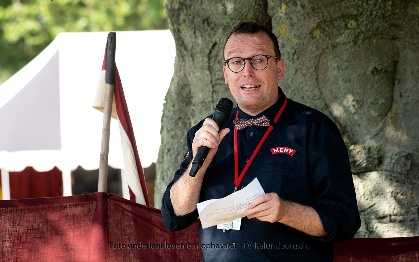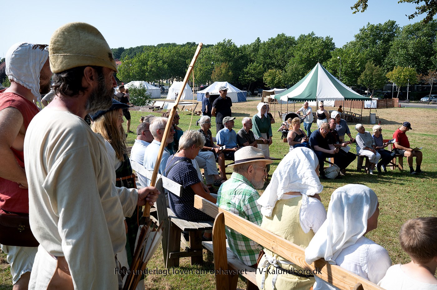 "Ærede fruer, tapre riddere, gøglere, ærede borgmester og rådmænd, kære borgere af fortid og nutid, velkommen til Kalundborg Middelalderfestival. "Her er porten slået op på vid gab," sagde museumsdirektør Eskil Vagn Olsen bl.a. i sin åbningstale.